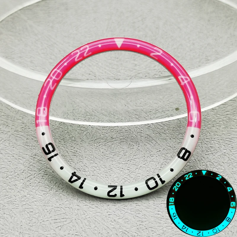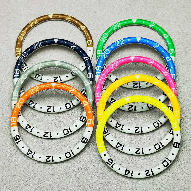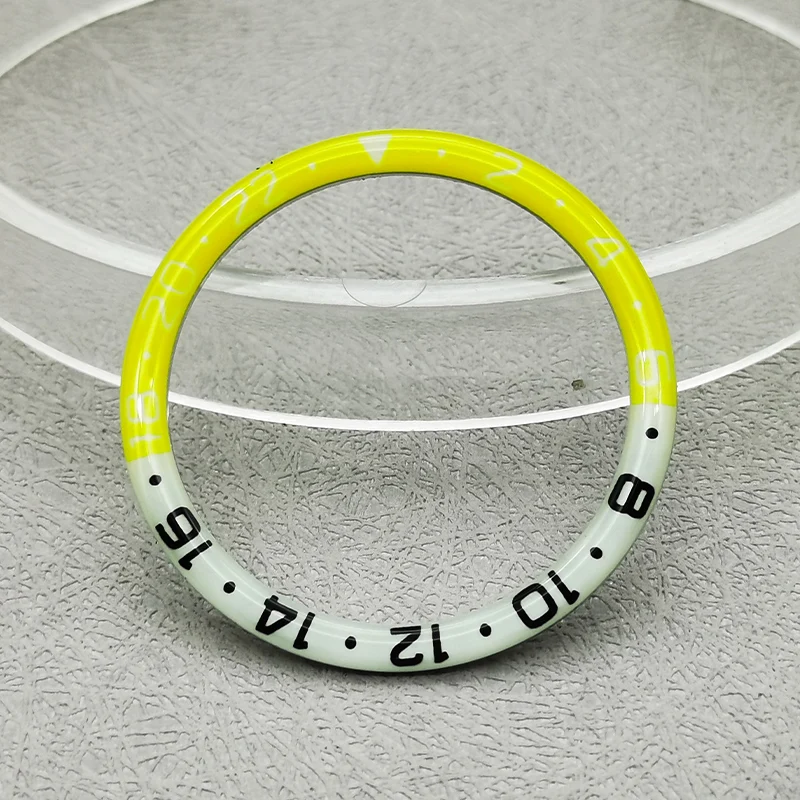 Enhance your dive watch with this vibrant 38mm bezel insert designed for SKX007, SKX009, SKX011, SKX171, SKX173, SKXA35, SKX175, SKX401K, and compatible SRPD models. Made from durable resin and aluminum, it features a glossy finish with a bold outer ring available in colors like gold, green, yellow, blue, pink, orange, light gray, or dark blue. The white inner ring displays large black numerals from 0 to 24 with minute markers, complemented by luminous C3 dots for improved visibility underwater or in low-light conditions. This stylish, functional accessory provides a reliable and colorful upgrade for your diver’s watch.