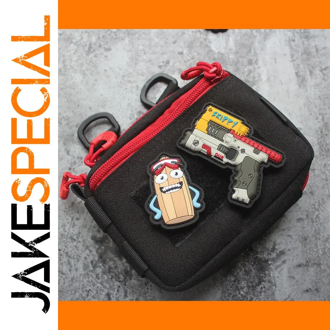 - Features a playful tactical theme with a stylized handgun and an anthropomorphic pencil, perfect for adding personality to accessories.