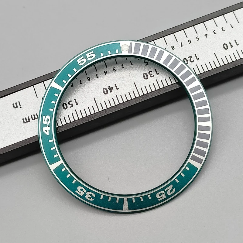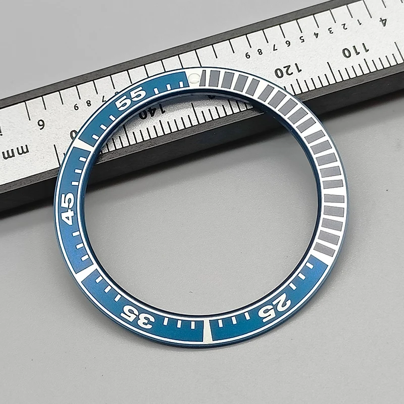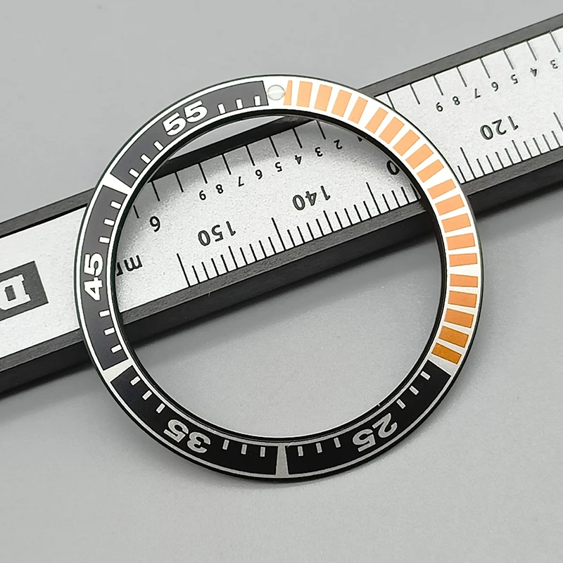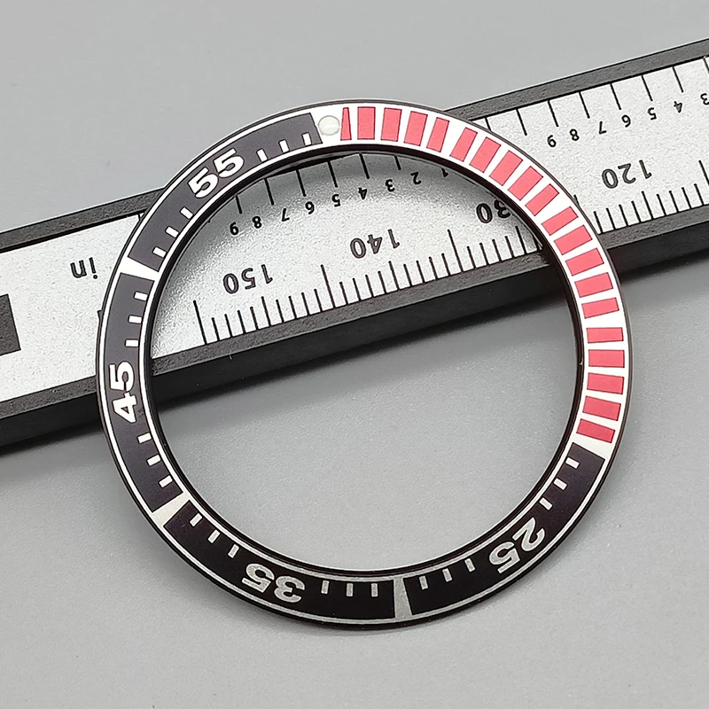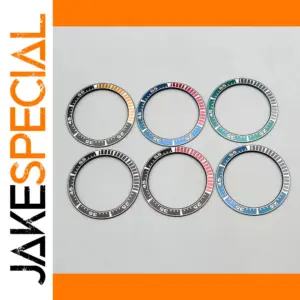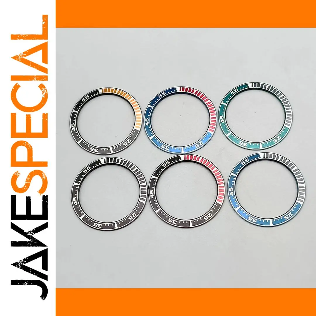 Enhance your King Samurai SRPE dive watch with this 40mm bezel insert ring, crafted from durable stainless steel and aluminum. Featuring a precise outside diameter of 40mm and inside diameter of 31.5mm, it offers a seamless fit as a replacement part. Available in six vibrant color options—black with orange and white accents, blue with red and white details, turquoise with black and white markings, black with bold white numerals, and two additional color schemes—you can customize your watch to match your style. This high-quality bezel insert provides clear minute markers, numerals, and a sleek, technical aesthetic, perfect for any diving or sports watch enthusiast.