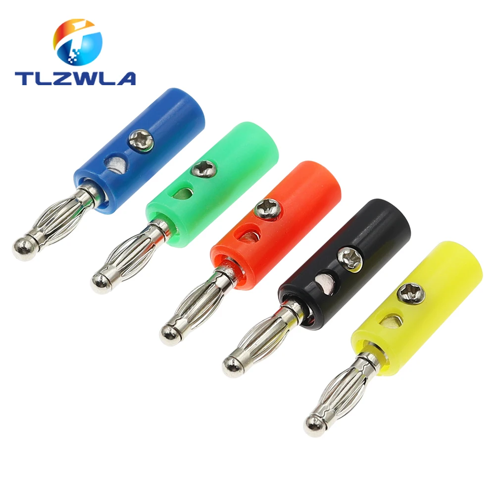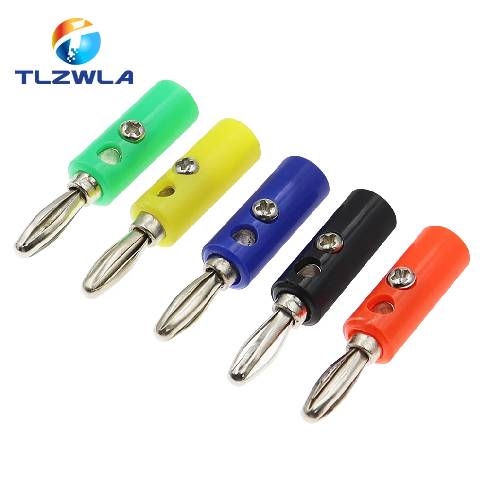 Enhance your audio setup with this set of five premium 4mm banana plug connectors in vibrant red, black, blue, green, and yellow. Featuring a secure four-leaf lantern design, these connectors provide reliable, high-quality connections for speakers and audio equipment. Each plug is made from durable plastic with a polished metallic pin for excellent conductivity. Designed for easy installation, they include screw terminals for a secure fit and are rated for 24V. Fully compliant with CE and RoHS standards, these connectors are ideal for ensuring clear, stable sound quality in your audio system while adding a splash of color and style.