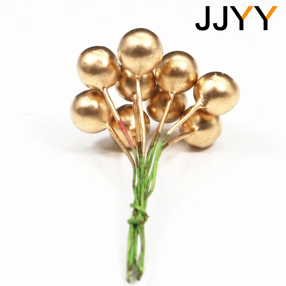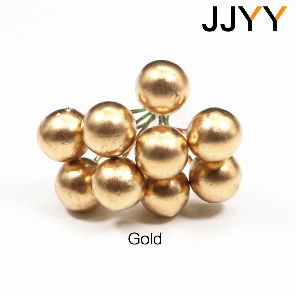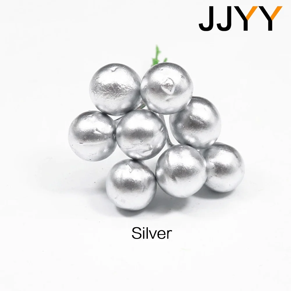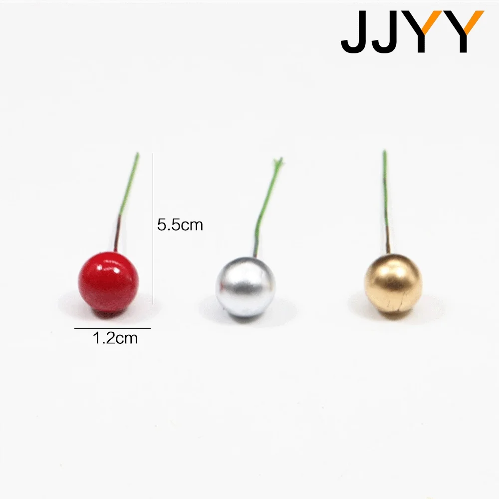 - Technical specifications include: foam wire construction, size of berries (1.2 cm), stem length (5.5 cm), available in three vibrant colors—red, gold, and silver—designed for versatile DIY applications.