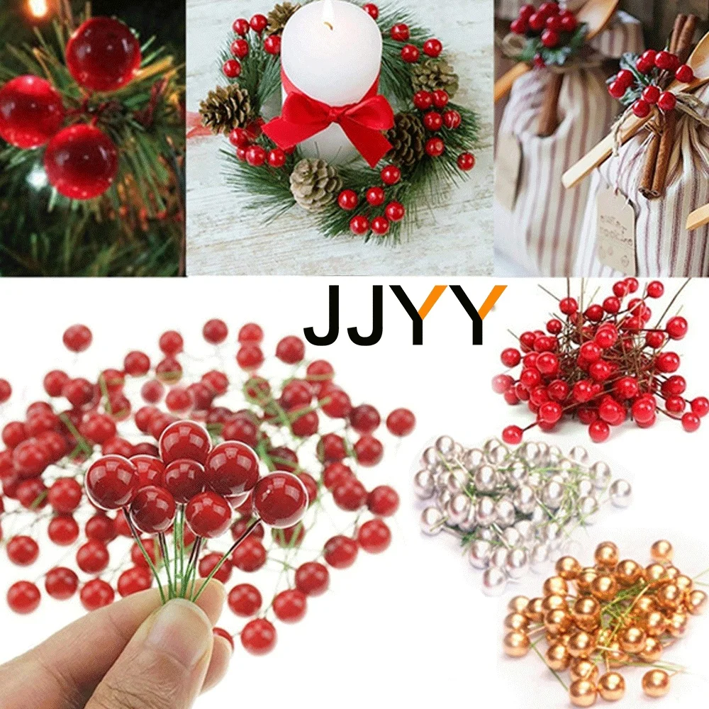 - Set of 50 foam wire artificial berries available in red, gold, and silver, perfect for vibrant, festive decorations and DIY craft projects.