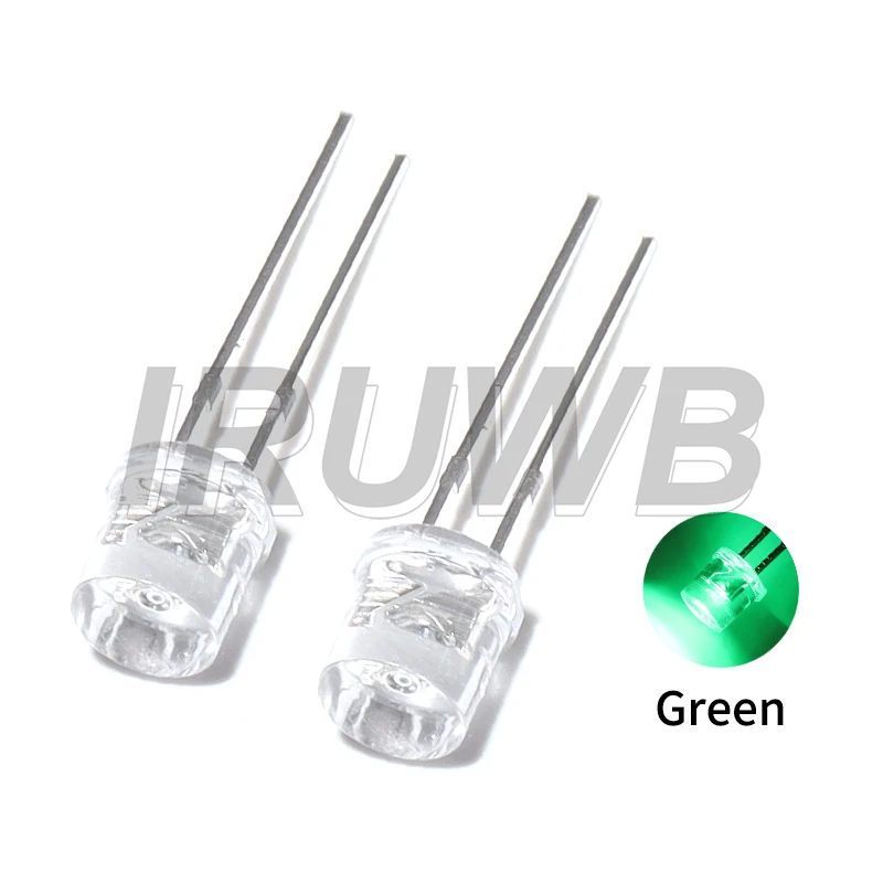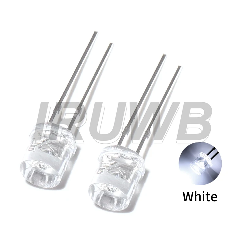 - Each LED has a 5mm diameter with a transparent, sleek cylindrical design and flat top surface, enhancing aesthetic appeal and ease of placement.