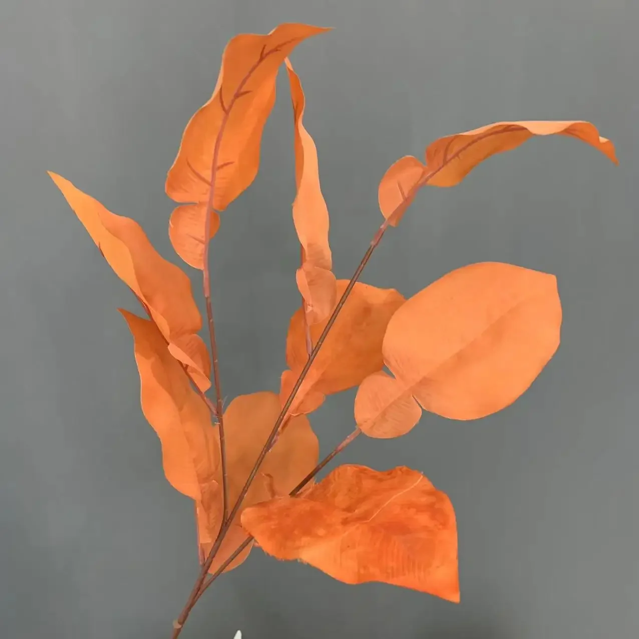 Transform your space with this eye-catching 80cm simulated large orange leaf decoration by High-concerned chemical. Crafted from realistic cotton material, each leaf features prominent veins and gently wavy edges, replicating natural dried foliage. The vivid orange hue captures the warmth of autumn, complemented by muted brown, pastel blue, and soft lavender tones that add subtlety and depth. Its fan-like arrangement with overlapping leaves creates a lively, dynamic display perfect for enhancing walls, tables, gardens, or photo shoots. Versatile and durable, this decoration brings a touch of nature-inspired elegance to any setting and can be easily integrated into various themes, from rustic weddings to modern home decor, elevating your environment effortlessly.