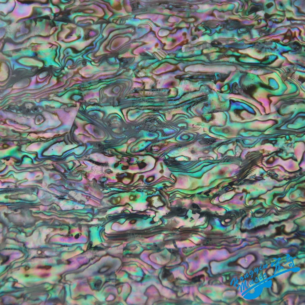 This vibrant 3A grade New Zealand abalone shell inlay panel measures 240mm long, 140mm wide, and 2mm thick, weighing 270 grams per piece. Crafted from high-quality half abalone shells reinforced with plastic, it features a colorful mosaic pattern in vivid blue, green, purple, and pink hues, with a highly reflective, iridescent finish. Designed for laser engraving and inlay work on guitars and other musical instruments, its 3mm thickness allows polishing without brightness loss. Suitable for detailed decorative projects, this panel offers a stunning, intricate mosaic aesthetic perfect for high-end instrument embellishments and custom craft applications.