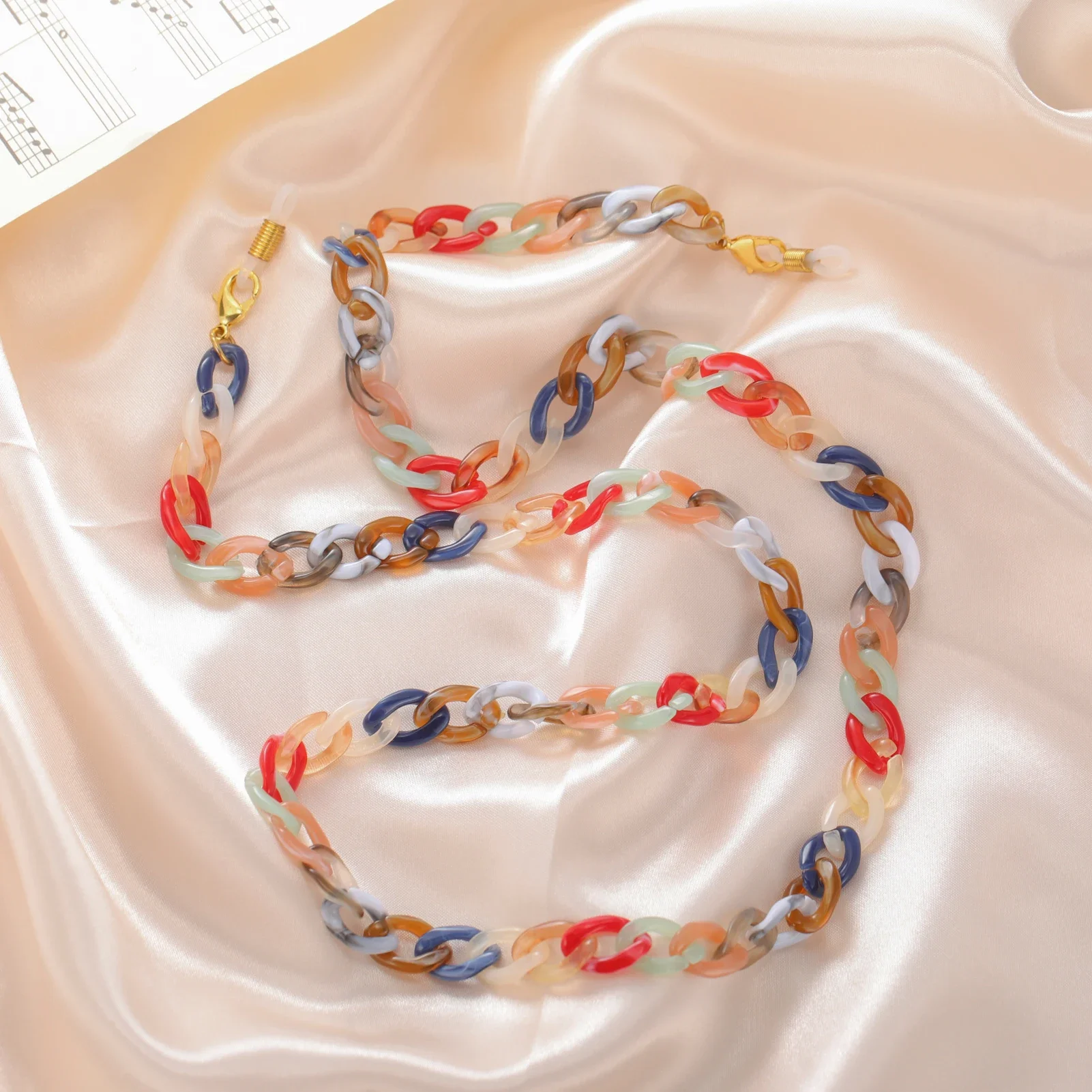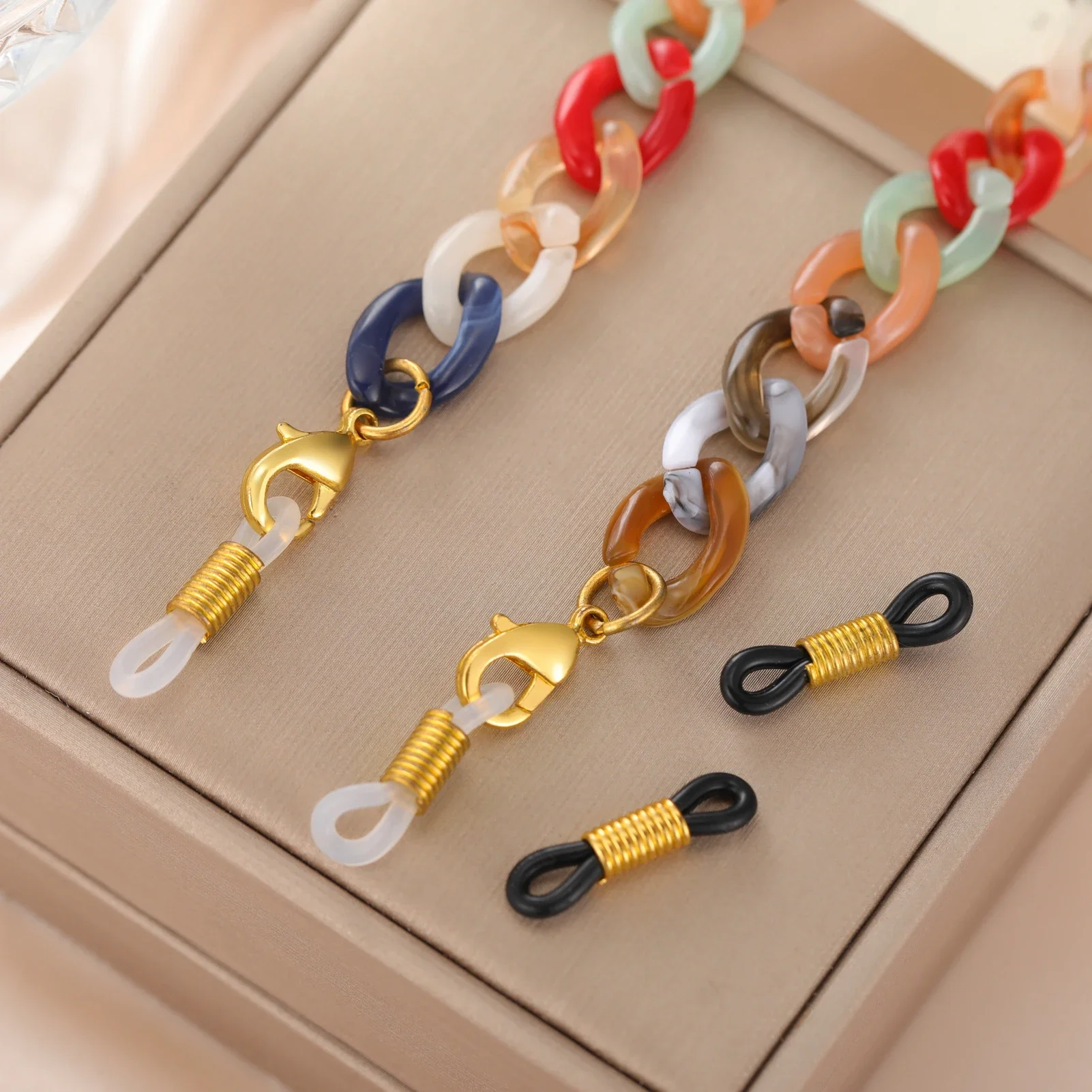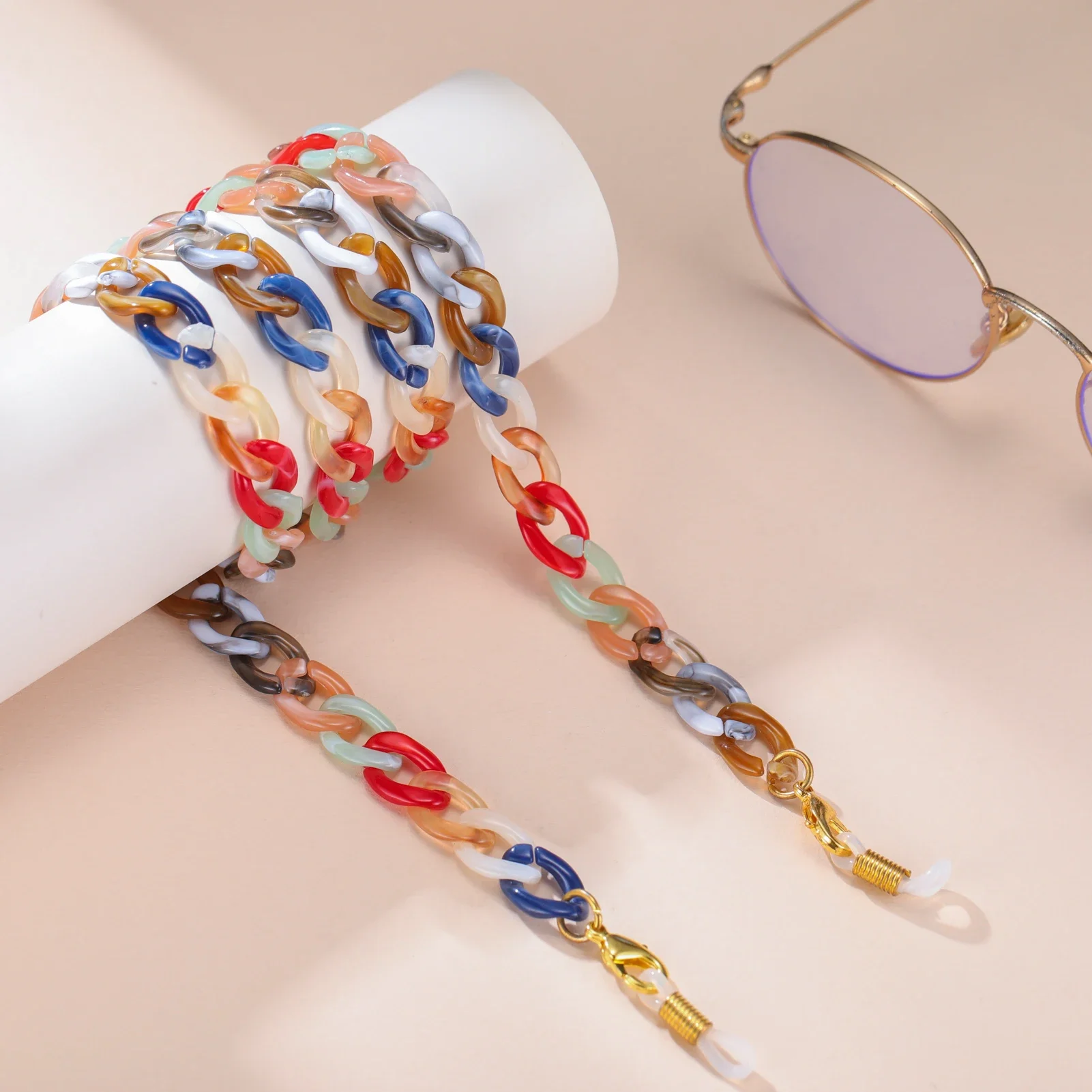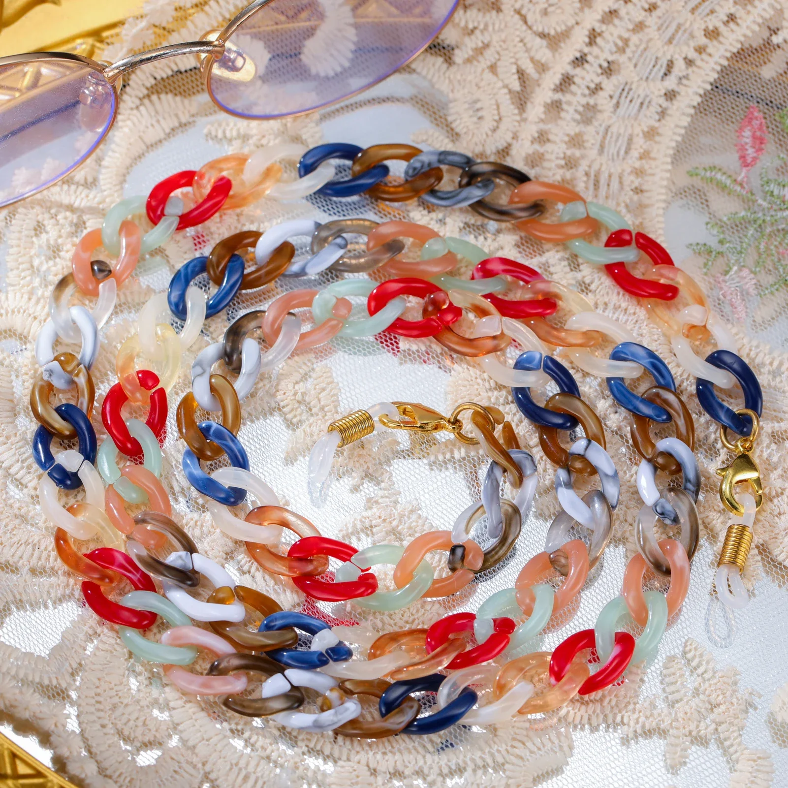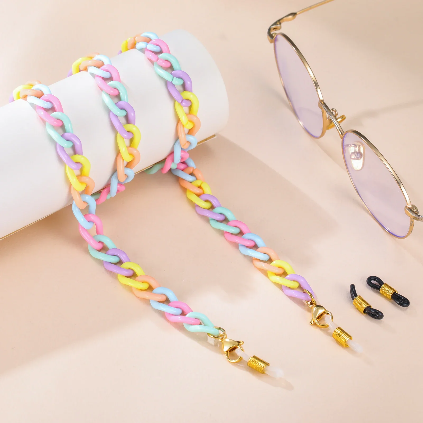 Imagine elevating your daily style effortlessly with this colorful acrylic sunglasses chain. Crafted for fashion-forward women, it combines playful multicolored oval links with a sleek, glossy finish. The chain measures approximately 74 cm long, available in widths of 10.4 mm, 11 mm, or 11.5 mm depending on your choice. Designed with zinc alloy connectors and included rubber rings, it securely attaches to your glasses or masks, adding a touch of charm and functionality. Perfect for casual, romantic, or classic outfits, it transforms your accessories into a statement piece. Whether for yourself or as a thoughtful gift, this chain blends practicality with vibrant elegance—making your everyday look instantly more stylish and fun.