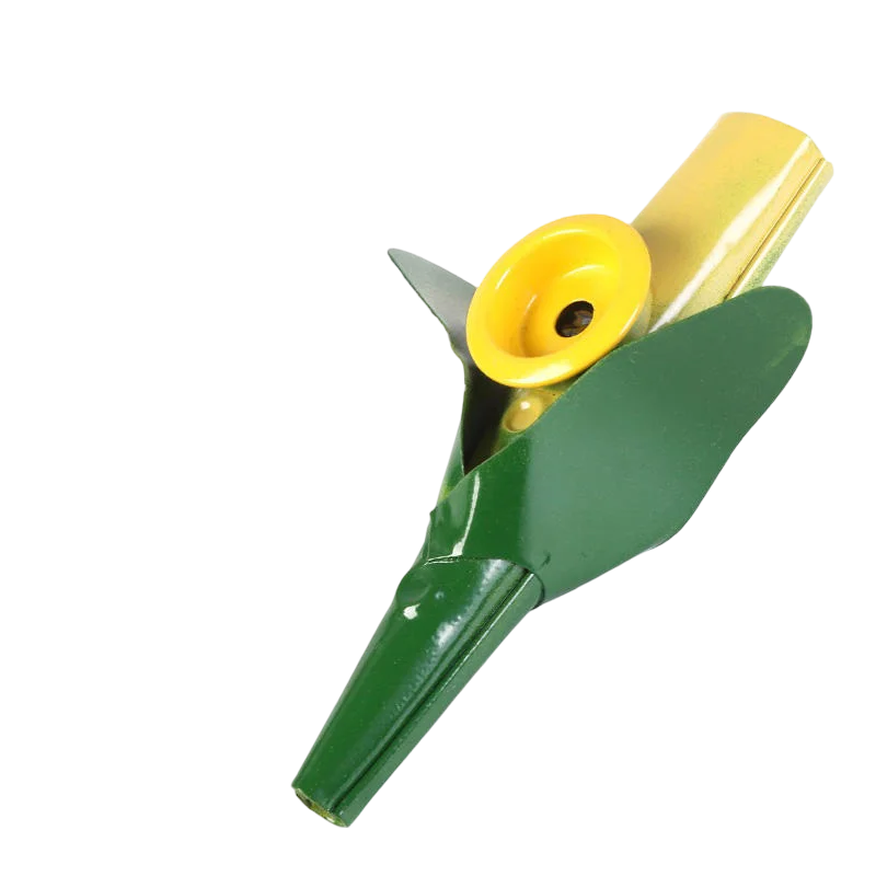 Experience the joy of music with this collection of four uniquely designed, all-metal kazoos. Crafted from stamped steel, each kazoo features vibrant hand-applied paint accents and detailed shapes resembling everyday objects—corn, race car, airplane, and tractor. Their durable construction resists dents and warping, ensuring a clear, consistent buzz and long-lasting performance. Each kazoo includes a pre-installed resonator membrane secured beneath a brass tuning cap, enabling immediate playability and easy replacement if desired. These lightweight, portable musical instruments are perfect for all ages above 3, bringing fun and creativity to parties, educational activities, or street performances. Their vivid, thematic designs make them attractive collectibles and engaging props for various occasions.