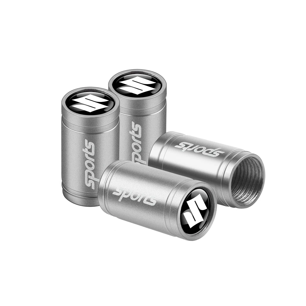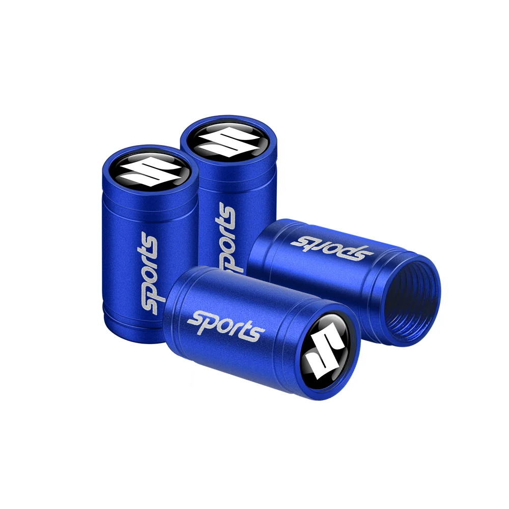 Enhance your vehicle’s appearance and protect your air valves with this set of four aluminium alloy tire valve caps in vibrant silver, black, red, and blue colors. Featuring a sleek, cylindrical design with a polished metallic finish, each cap has a slightly convex top adorned with a vivid red stylized “S” logo, adding a bold visual touch. These universal-fit caps screw easily onto car, motorcycle, and bicycle air valves, safeguarding against leaks, dirt, and damage. Made from high-quality, corrosion-resistant aluminium alloy, they blend durability with stylish aesthetics, making them perfect for models like Suzuki Swift, SX4, Samurai, Baleno, Vitara, Jimny, Sierra, Ignis, and Alto.