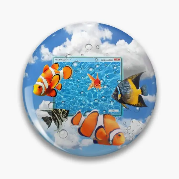 Imagine enhancing your outfit with a playful, colorful brooch that captures the lively spirit of underwater life. This vibrant aquatic fish brooch features a cartoon-style scene set against a cheerful blue sky filled with fluffy white clouds. Five cheerful, exaggerated fish with bright colors—orange with white stripes, black, yellow, and blue—swim across the scene with playful charm. The glossy finish intensifies the vivid hues, creating an eye-catching accessory perfect for casual wear or special occasions. Designed with a soft pin mechanism, the brooch attaches securely without damaging clothing. Its cheerful design makes it an ideal gift for fish lovers or anyone who enjoys fun, whimsical jewelry. Size options allow you to select the perfect fit for your style.