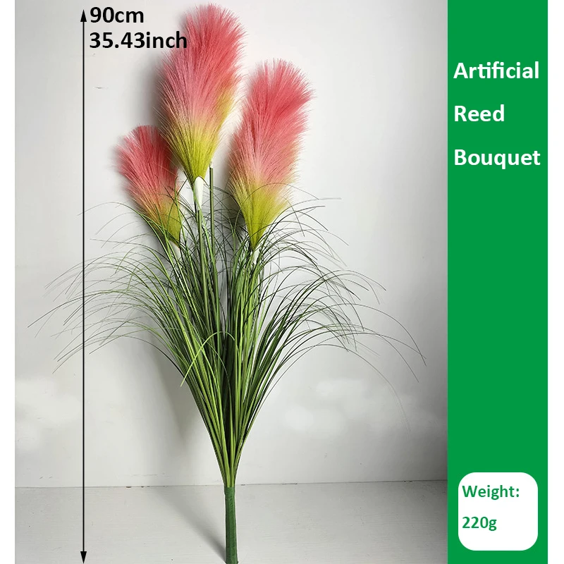Transform your space with this vibrant artificial reed bouquet, expertly crafted from PVC with no high-concern chemicals for a safe and eco-friendly display. Available in two sizes—an 80cm, 3-head arrangement and a 90cm, 5-head version—these lush bouquets feature tall, slender dark stems with fine, grass-like foliage and colorful, feathery plumes. The vivid hues include autumn, green, orange, pink head, pink purple, white, yellow, and yellowish, with beautiful gradient effects that evoke natural, seasonal beauty. Perfect for enhancing birthdays, baby showers, bridal showers, or home decor, these versatile floral accents create a warm, inviting atmosphere indoors.