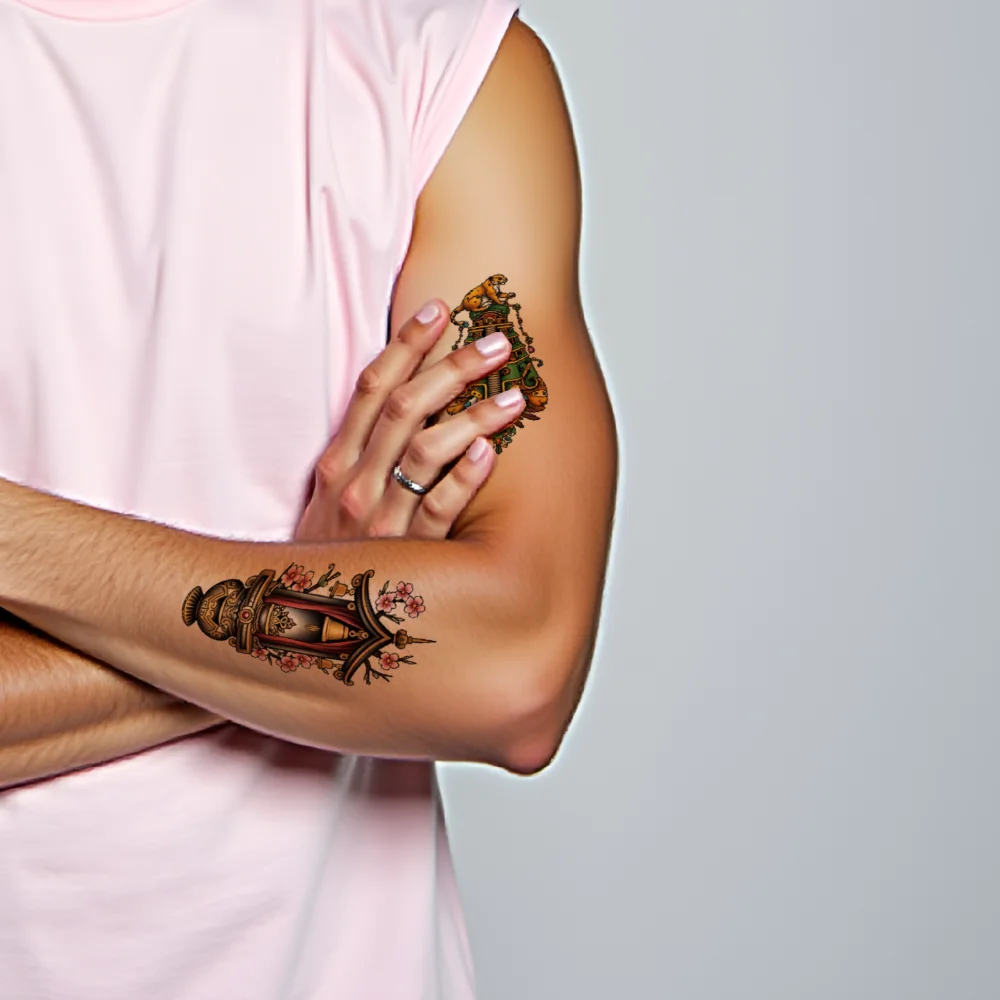 Experience the charm and elegance of traditional Asian designs with this easy-to-use tattoo set. Perfect for expressing your style, these tattoos offer a beautiful, temporary way to stand out for special moments. Whether you're attending a festival, celebrating a birthday, or just want to add some flair to your look, this set is a reliable and vibrant choice. Effortlessly apply and remove, these tattoos provide beautiful, detailed artwork that lasts up to a week. Elevate your personal style today—these tattoos are ready to make your skin a canvas of cultural artistry.
