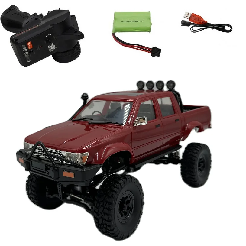 Experience the thrill of off-road adventure with this 1/16 scale RC climbing car, featuring a vibrant blue exterior for a sleek, modern look. Equipped with a 4-channel control system and a remote control range of 50 meters, it delivers precise handling over rugged terrains. Powered by a 7.2V battery (not included), it offers approximately 20-30 minutes of exciting gameplay. Crafted from durable metal, plastic, rubber, and PVC, this ready-to-use vehicle features detailed off-road tires, a realistic pickup truck design with a four-door cab, chrome-finished side mirrors, and protective front bars. Perfect for ages 3 and up, it promises hours of realistic, adventurous fun.