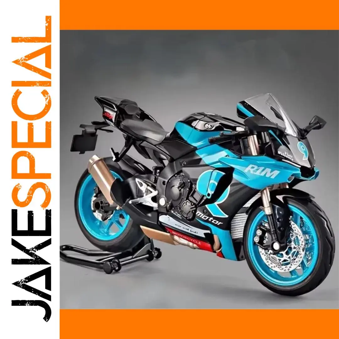 This vibrant blue 1/9 scale racing motorcycle