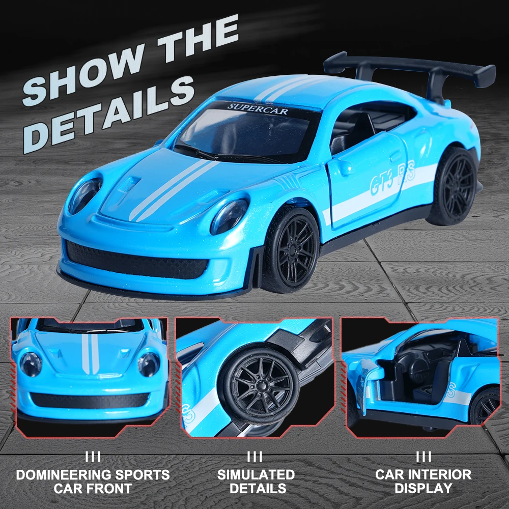 - This model, in a vibrant “Nine Thousand Eleven-B” blue, is meticulously built to showcase fine detail, from racing stripes to aerodynamic features, bringing high-performance aesthetics to your collection or decor.