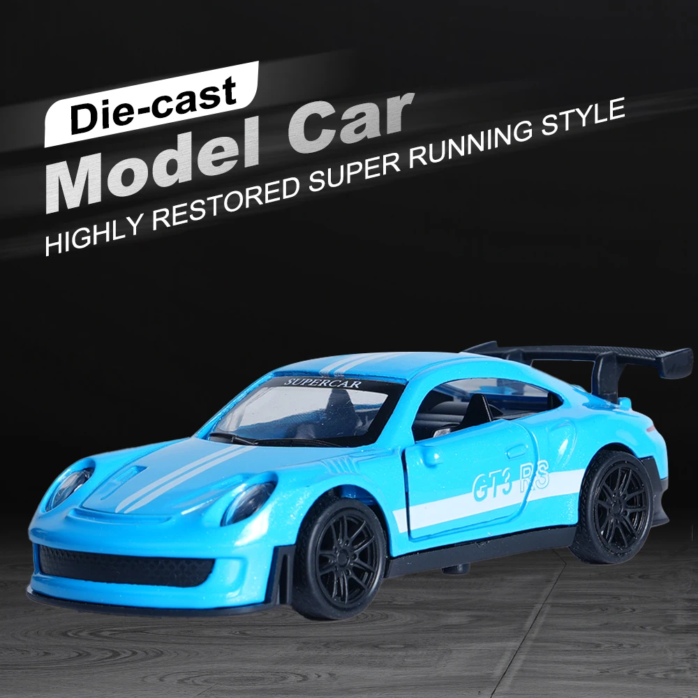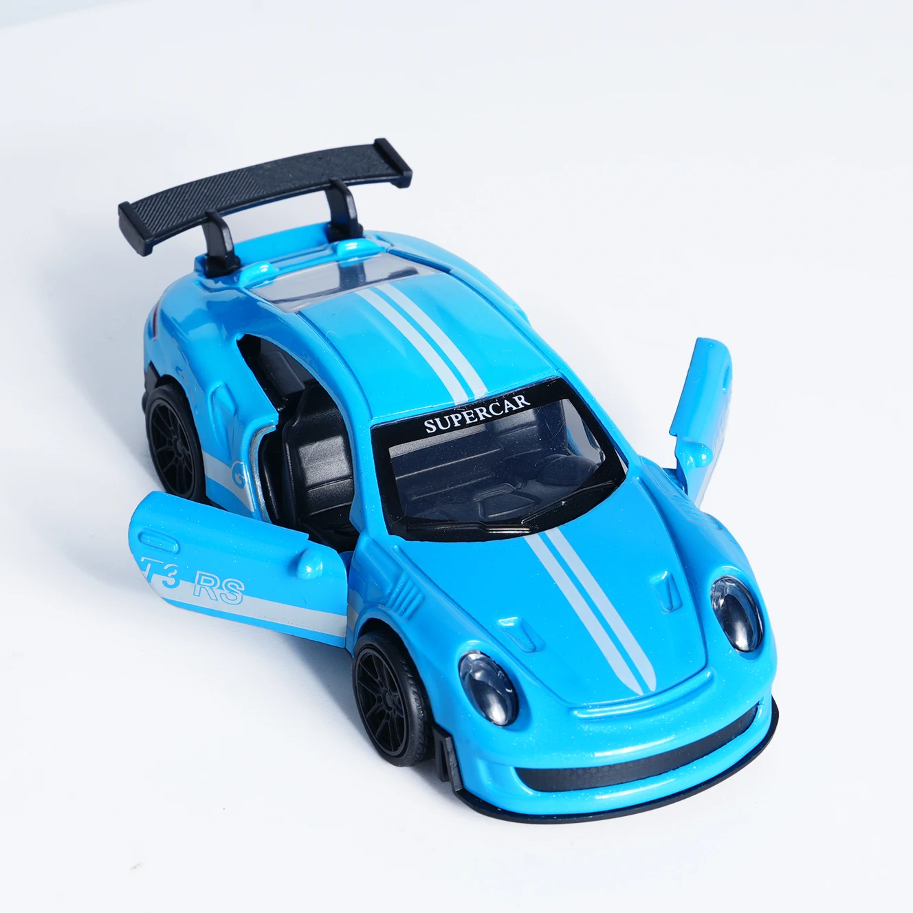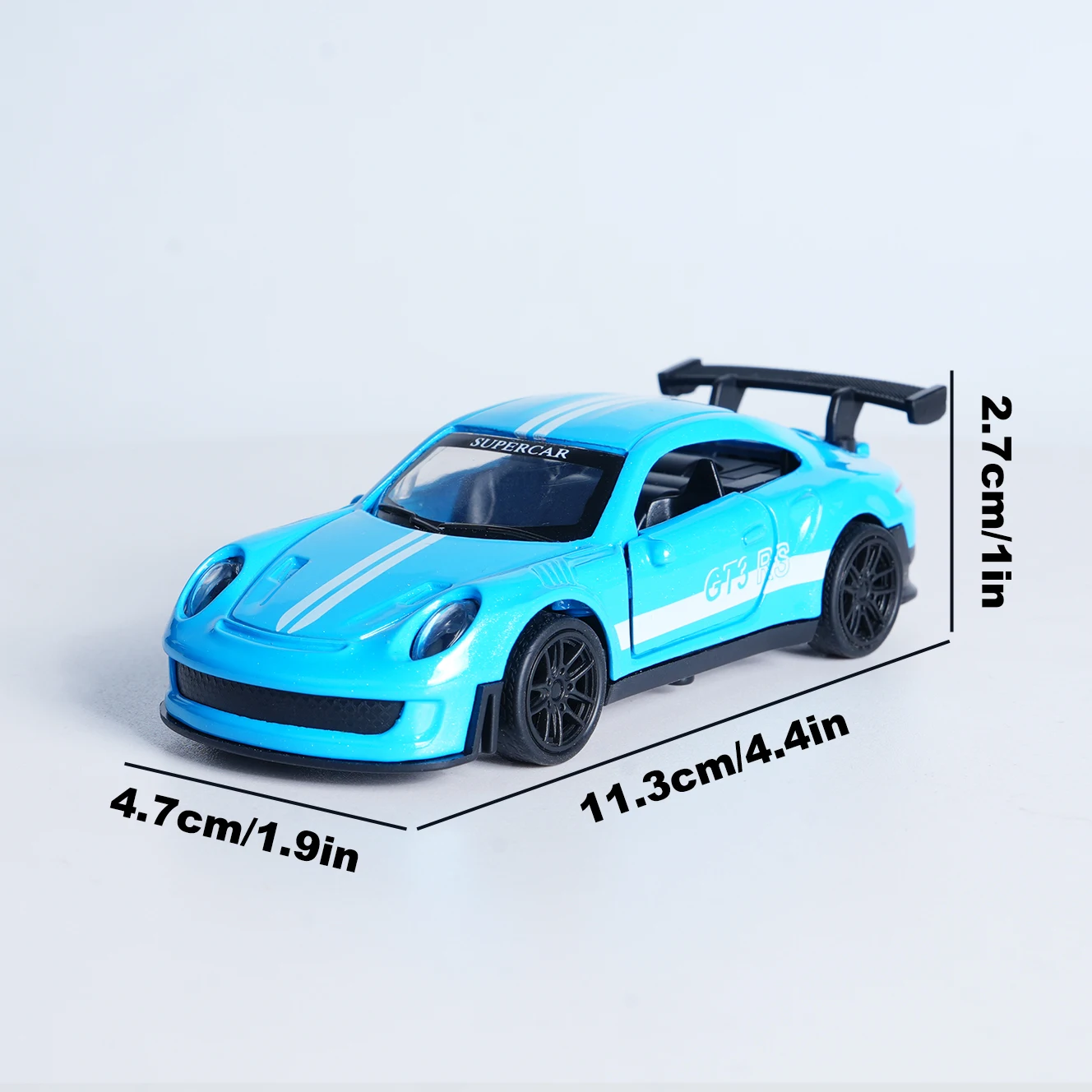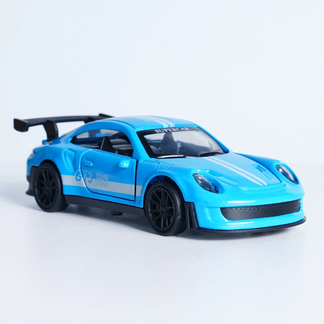 Experience the thrill of owning this expertly crafted 1:43 scale diecast alloy supercar, designed for both play and display. The bright blue color accented with white racing stripes gives it an exciting, sporty appearance that captures the essence of high-speed racing. The sleek, aerodynamic silhouette is complemented by realistic details like functioning doors, detailed headlights, taillights, side mirrors, and a large rear wing spoiler for an authentic look. With a glossy finish that enhances its vivid hue and smooth contours, this model is perfect for collectors, kids, or enthusiasts eager to showcase their passion for racing cars. Its compact size makes it a stylish desktop ornament, an engaging toy, and an impressive piece for any space.