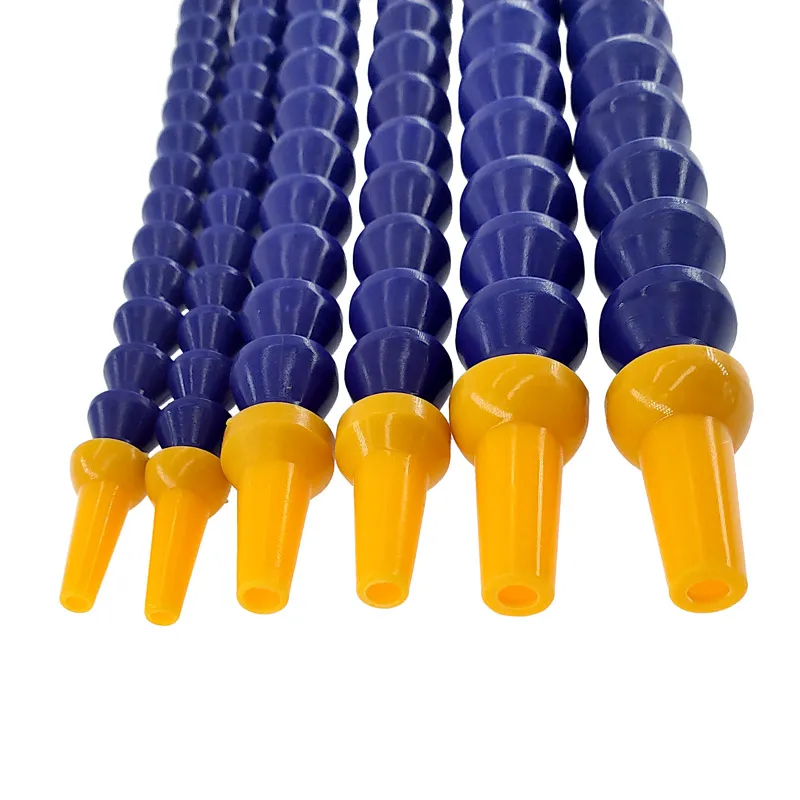 Imagine upgrading your cooling system with this highly flexible set of six plastic hoses, designed to deliver optimal water or oil flow. Featuring a striking combination of vibrant blue surfaces and bright orange nozzles and fittings, these hoses add a bold visual appeal to your setup. The articulated joints allow for easy adjustments, helping you achieve precise positioning, while the tapered nozzles provide an efficient flow direction. Equipped with adjustable switches, you can easily switch between round and flat spray patterns to suit your needs. Craftsmanship and functionality merge in these durable, smooth, glossy hoses, making them perfect for professional or custom cooling systems that demand both style and performance.