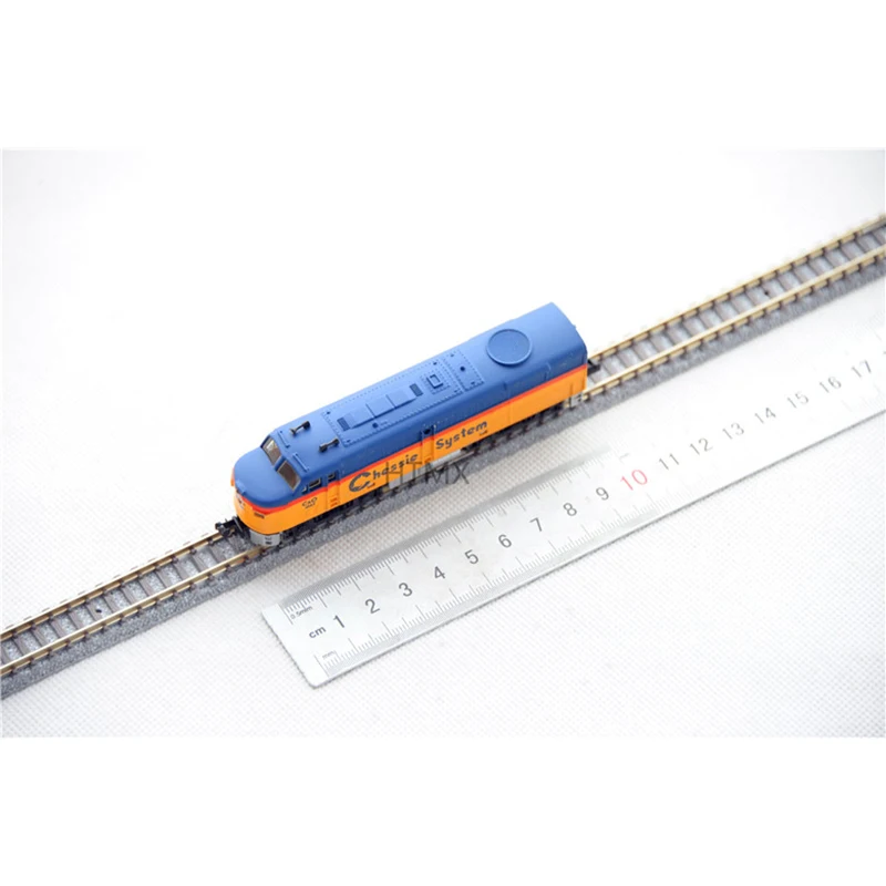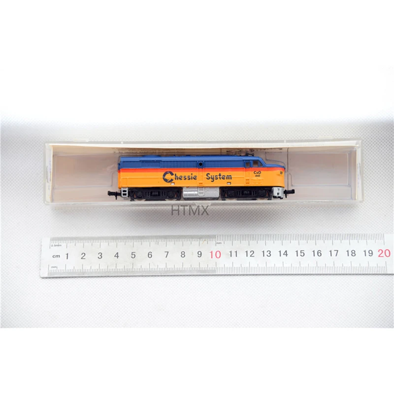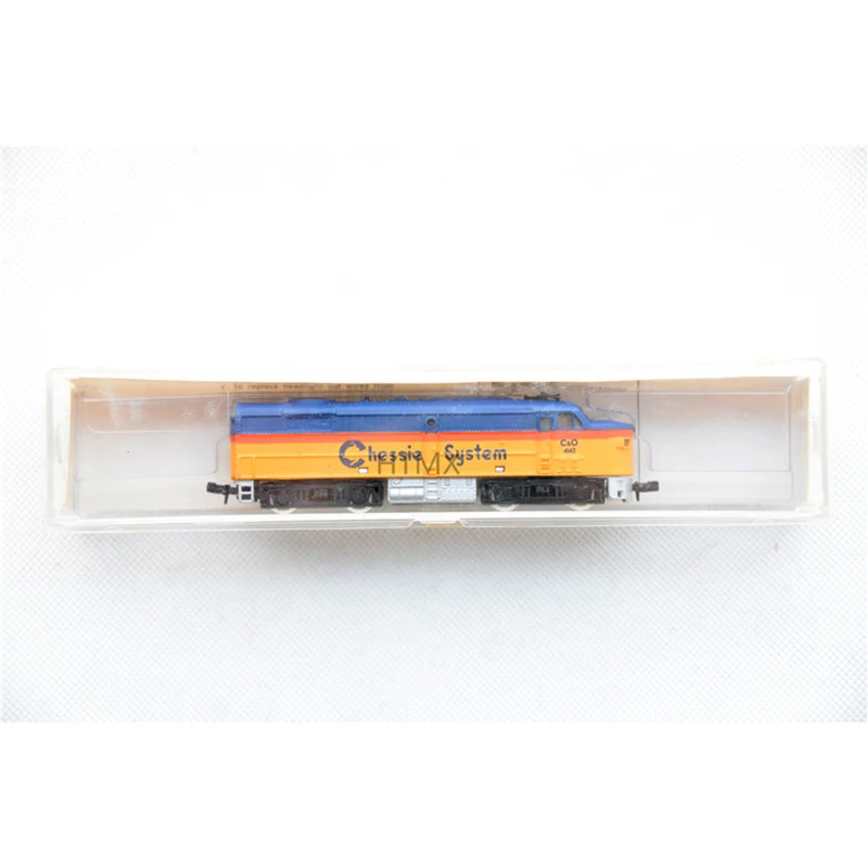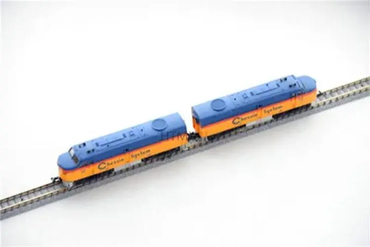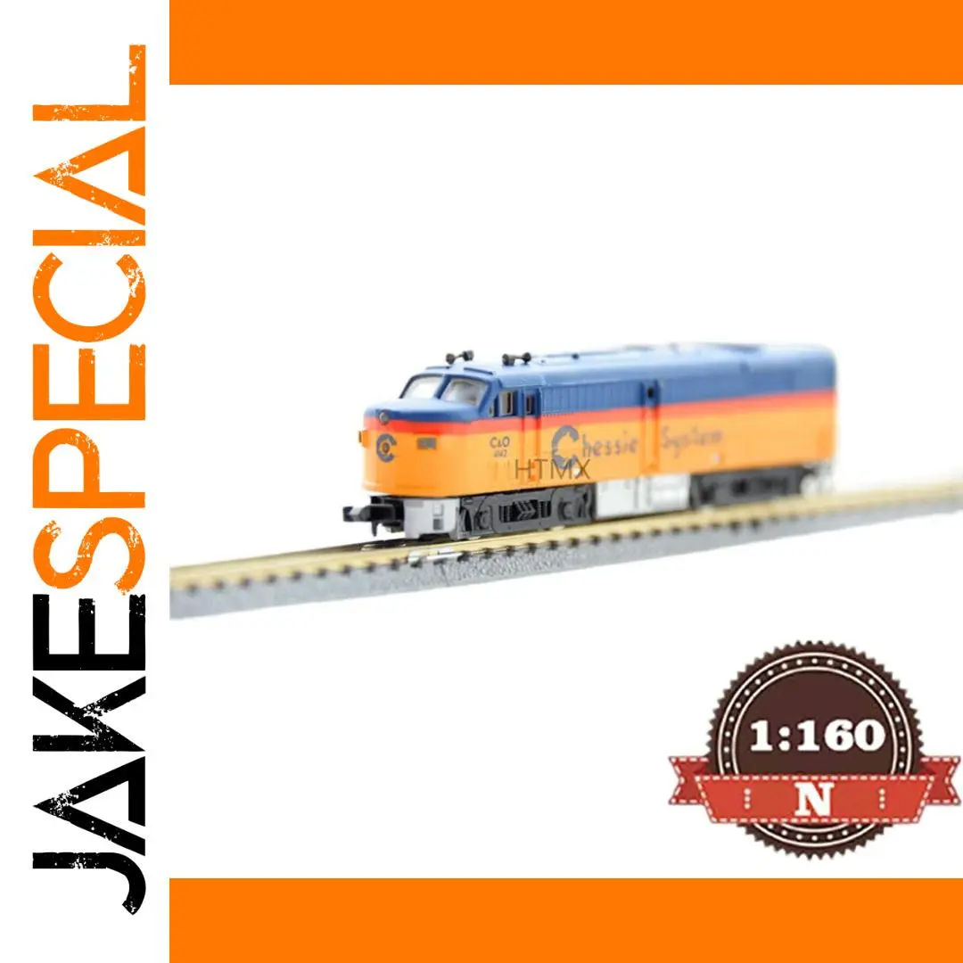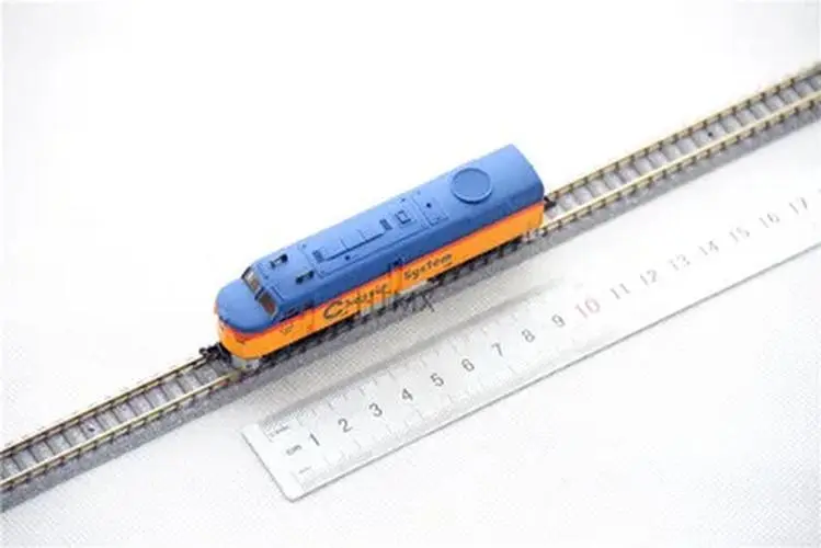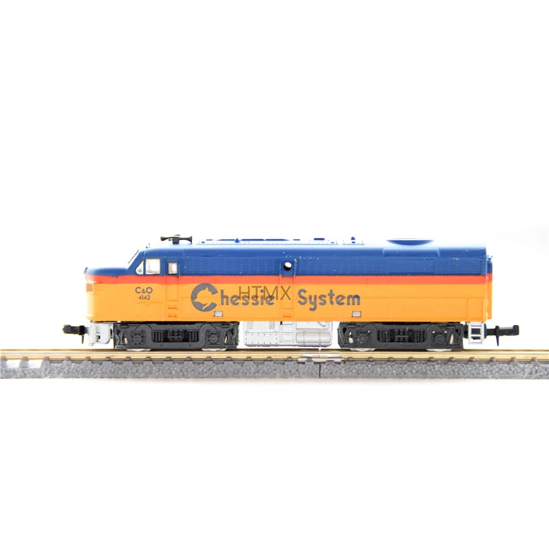 Imagine adding this striking N scale model train to your collection or display, instantly transforming your space with its bold colors and intricate details. Measuring approximately 12 centimeters long, this unpowered locomotive features a plastic body finely crafted to resemble a real train, complemented by alloy wheels for added realism. The vivid blue base color is contrasted by bright yellow-orange accents on the front and upper section, creating a visually captivating piece. Small surface details such as windows, vents, and technical labels like “Chessie” and “Super” enhance its authenticity, making it a perfect gift or décor item for enthusiasts. Its sleek finish and precise craftsmanship make it a standout addition to any aesthetic or model collection.