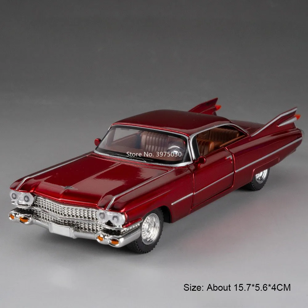 Experience the thrill of owning this stunning blue Cadillac Eldorado diecast miniature, crafted with meticulous attention to detail. Measuring approximately 15.7 cm long, this high-simulation model captures the elegance and vintage charm of a classic 1950s Cadillac. The vibrant blue finish highlights its sleek, elongated body with flowing contours, complemented by chrome accents on the wide front grille, round dual headlights encased in clear plastic, and side trim. Its prominent tailfins add a retro appeal, enhancing its nostalgic beauty. The model features four openable doors, a durable alloy body, rubber tires with intricate wire-spoke hubcaps, and electronic functions like sound and light, creating a realistic, luxurious display piece that’s perfect for collectors or enthusiasts.