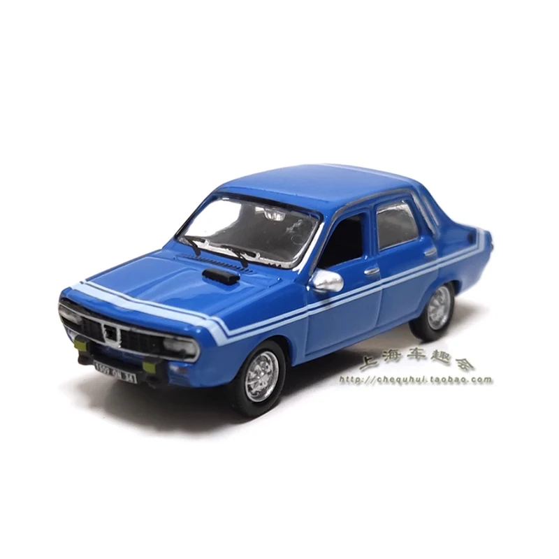 - Finished in vibrant blue with contrasting white racing stripes that run longitudinally on the hood, roof, and trunk, highlighting its sporty vintage aesthetic.