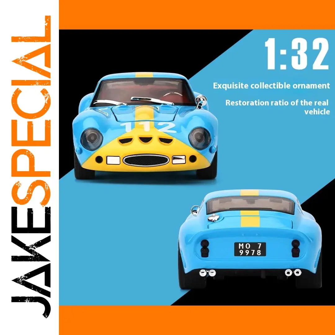 Experience the thrill of owning a meticulously crafted 1/32 scale die-cast replica of the classic Ferrari 250 GTO. This model features a striking bright blue body with a bold yellow stripe running from the front to the back, capturing the iconic racing design perfectly. Its aerodynamic shape, large circular headlights, and sleek black tires with detailed treads bring realism to your collection or play. The alloy construction ensures durability, while sound and lighting effects add an immersive dimension. Designed for enthusiasts and collectors aged 14 and above, this carefully detailed toy offers a perfect blend of aesthetic appeal and functional features, making it an ideal gift or display piece for any racing car lover.