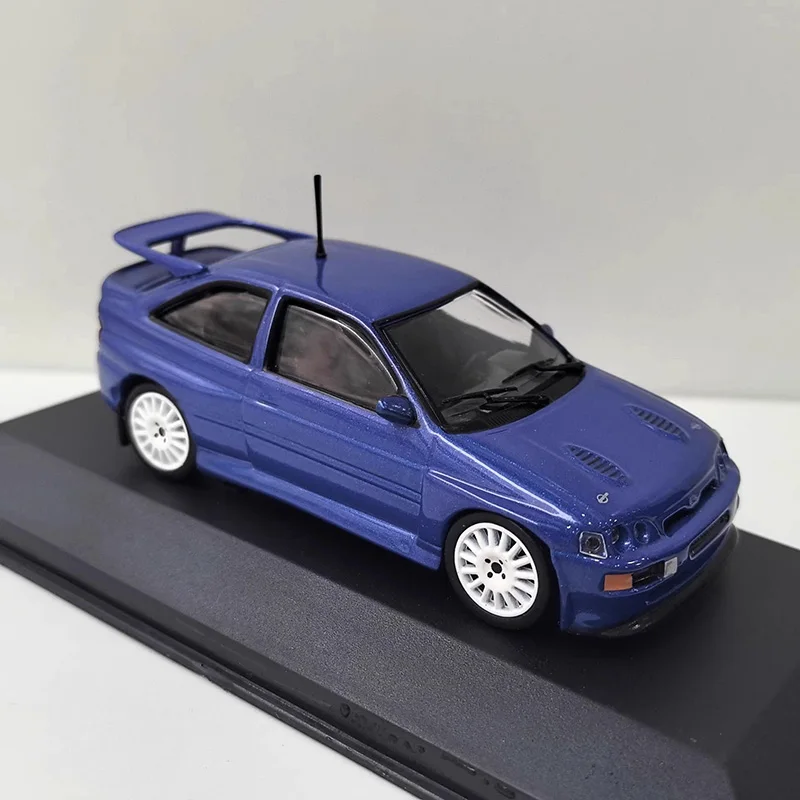 Experience the thrill of the iconic Escort RS 1992 with this meticulously crafted 1/43 scale diecast model. Made from alloy, plastic, and rubber tires, this detailed replica features a vibrant ‘A’ blue finish, sporty aerodynamic body with a rear spoiler, round headlights, black window trims, and white multi-spoke wheels with rubber tires that turn. The model’s precise surface details include panel gaps and subtle decals, capturing the essence of this classic hatchback. Although the engine cover, trunk, and doors do not open, this high-quality miniature showcases realistic design elements, making it a perfect addition for collectors and enthusiasts to display and admire the legendary rally car.