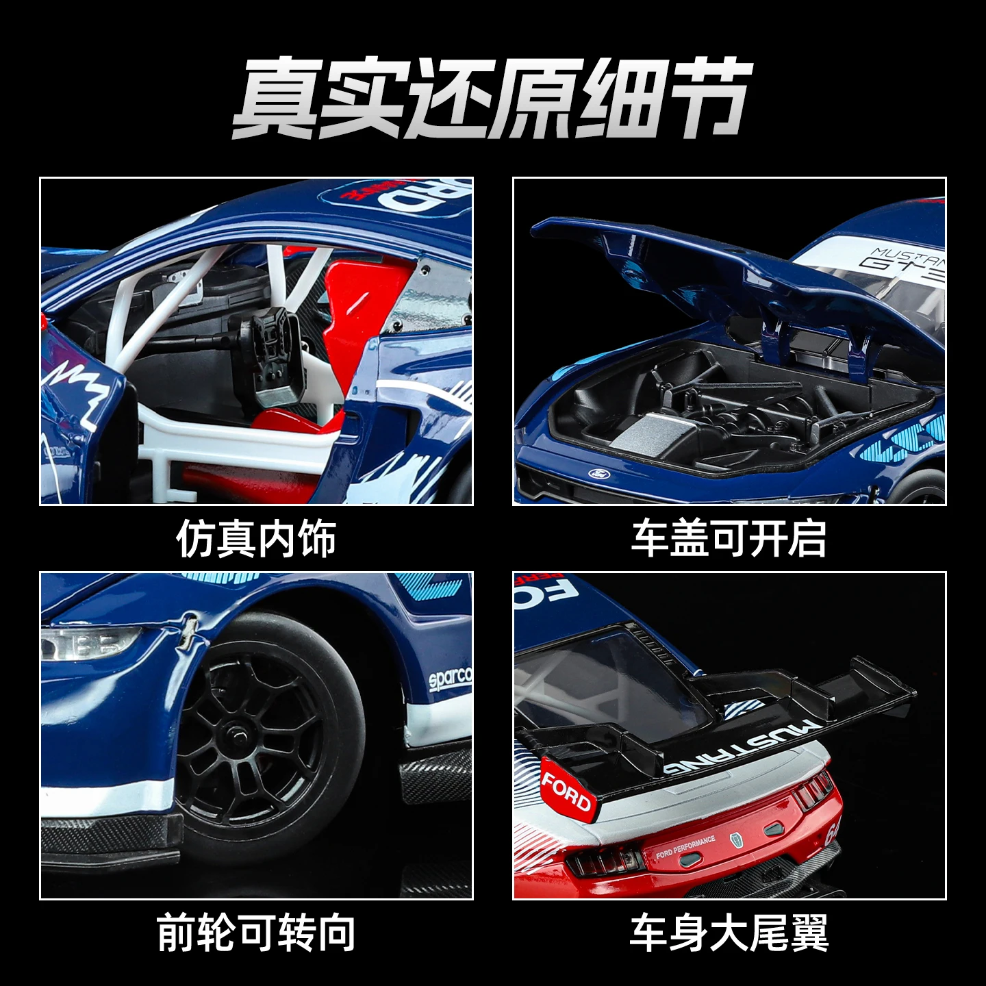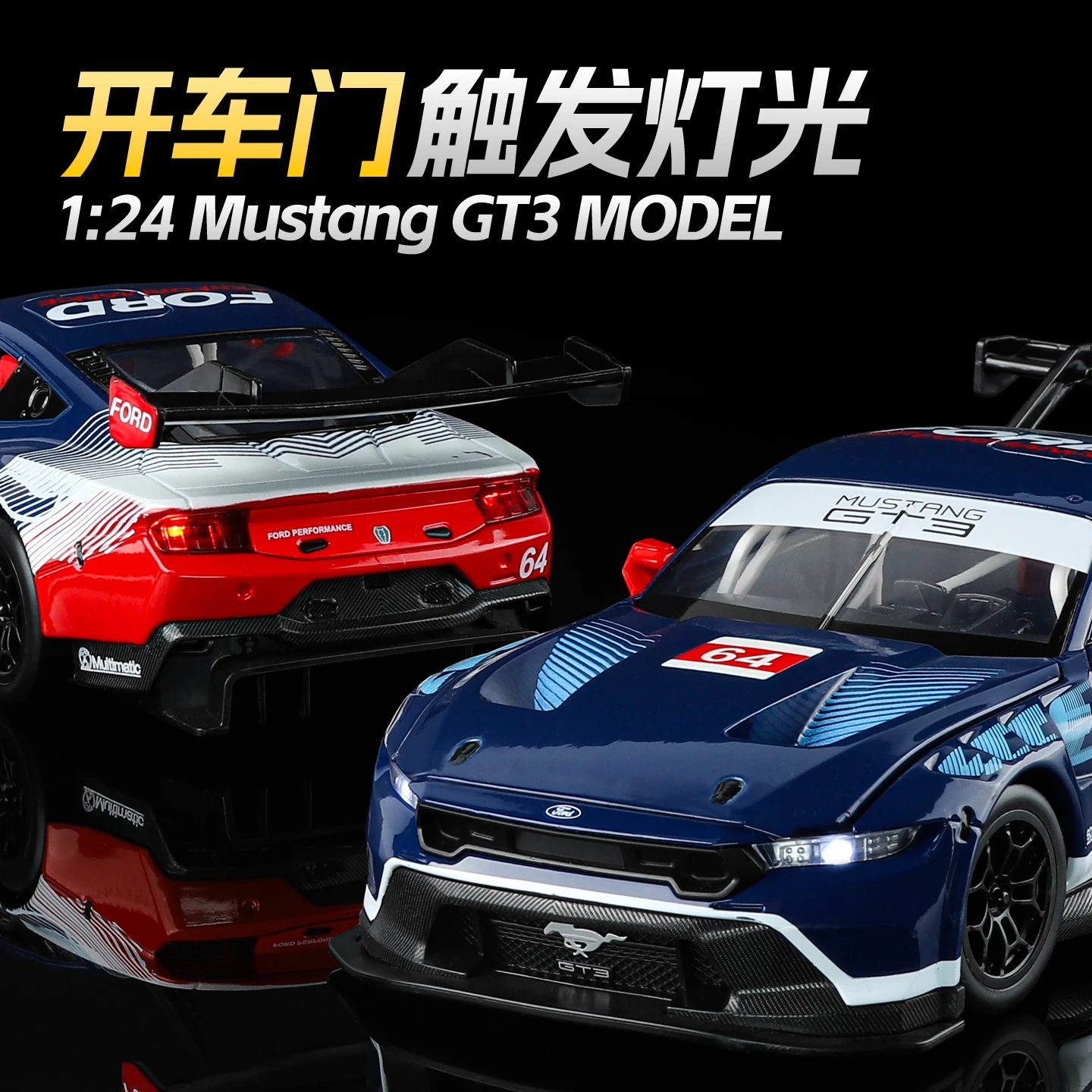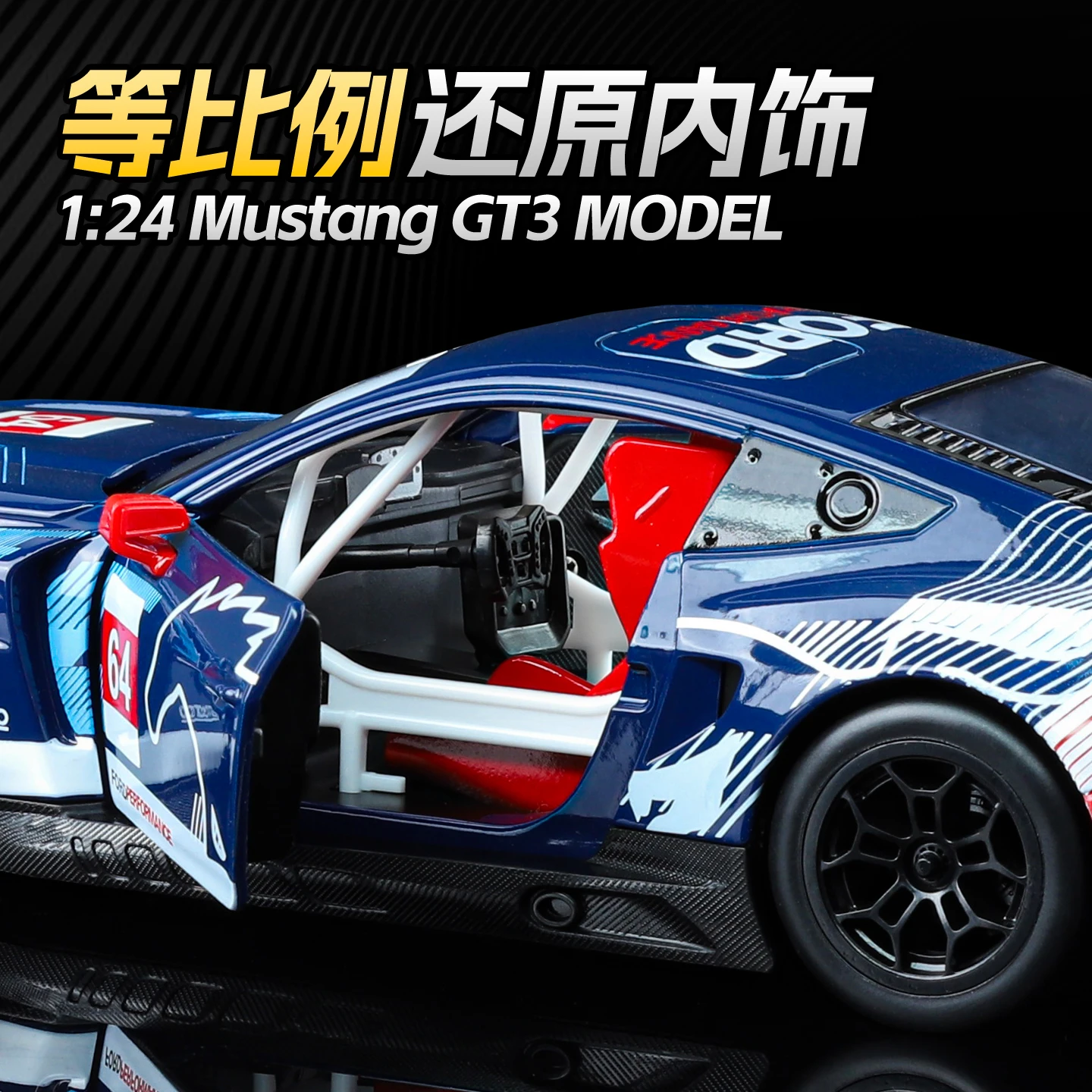This vibrant blue Ford Mustang GT3 model