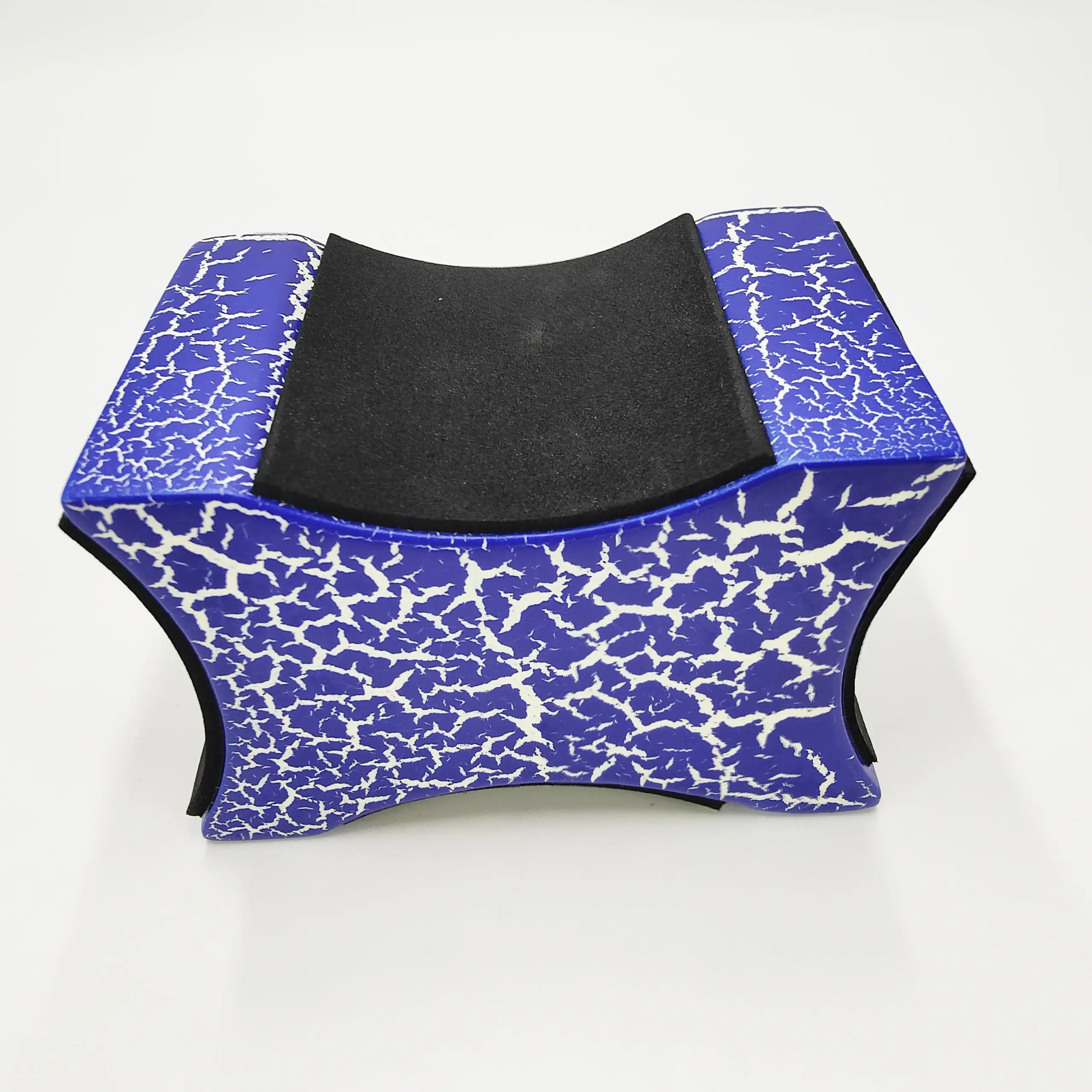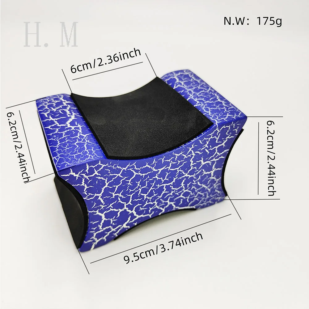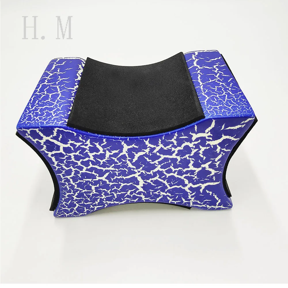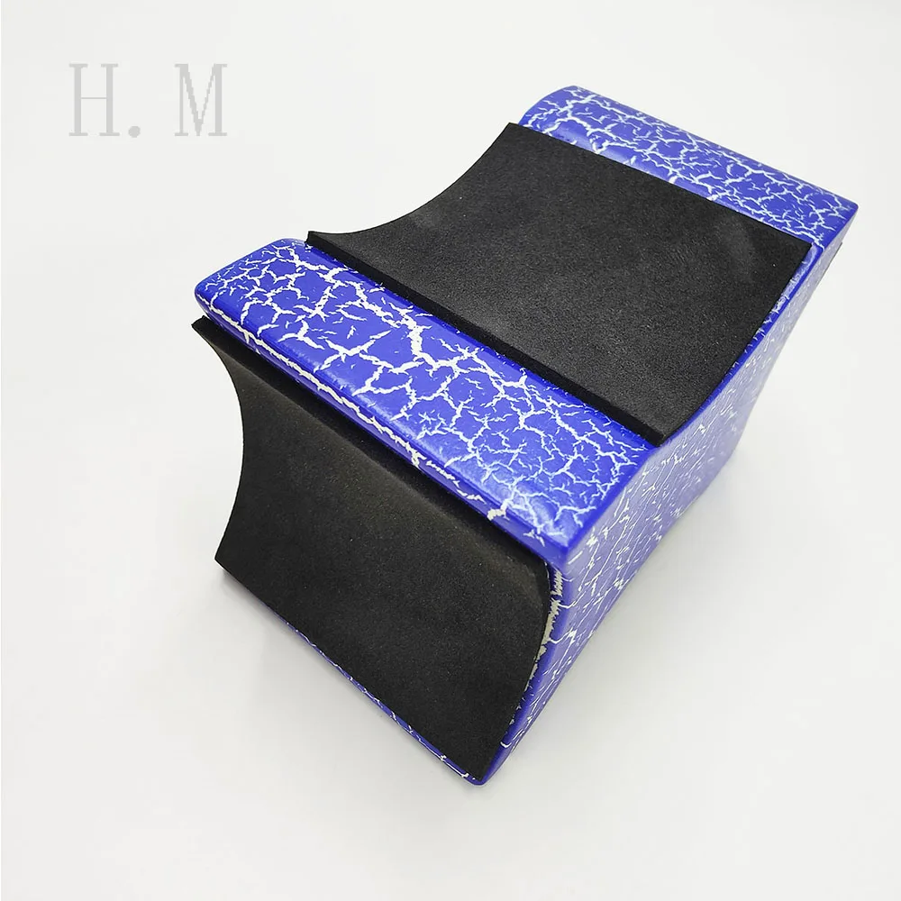 Experience a perfect blend of style and functionality with this eye-catching guitar neck rest support pillow. Designed for musicians and luthiers alike, its vibrant blue exterior boasts a striking white crackle pattern, giving it a bold, dynamic appearance that stands out in any workspace. The curved, wave-like shape ensures a snug fit around various guitar and string instrument necks, while the smoothly finished, rounded edges add to its sleek design. Made from sturdy mahogany wood, it offers excellent support combined with soft padding on contact surfaces to protect your instrument from scratches and damage. Easy to adjust for different instrument heights, this support pillow enhances your repair or maintenance experience, blending aesthetic appeal with practical utility.