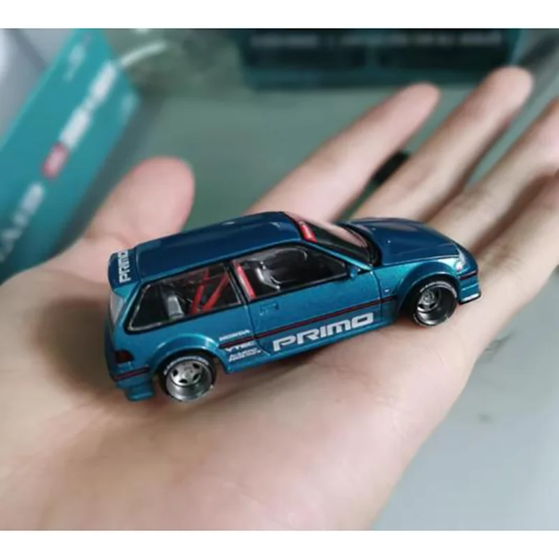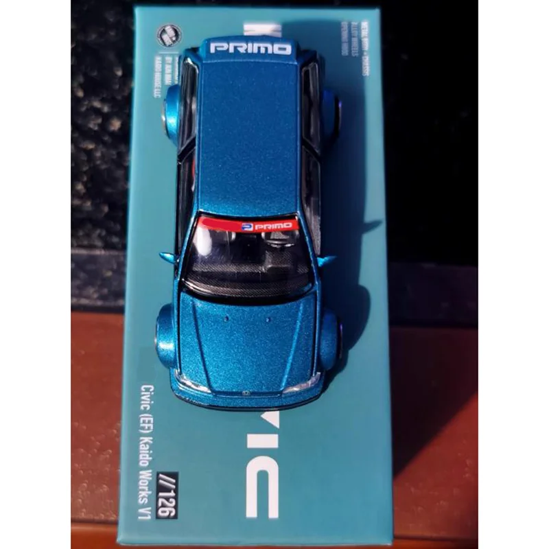 Imagine owning a beautifully crafted miniature replica of the iconic Honda Civic EF in vivid metallic blue. This diecast model captures the car’s sleek, aerodynamic design with remarkable attention to detail, from the distinct front headlights to the carefully molded grille. The transparent windows reveal an intricately detailed interior, making it an impressive display piece or collectible. Its realistic multi-spoke dark gray alloy rims and low-profile tires enhance its sporty appearance. With authentic accents like bold “PRIMO” lettering and racing decals such as “VTEC” and “Honda,” this model exudes energy and style. Perfect for enthusiasts, it elevates any collection or display setup, making it a durable and visually striking addition.