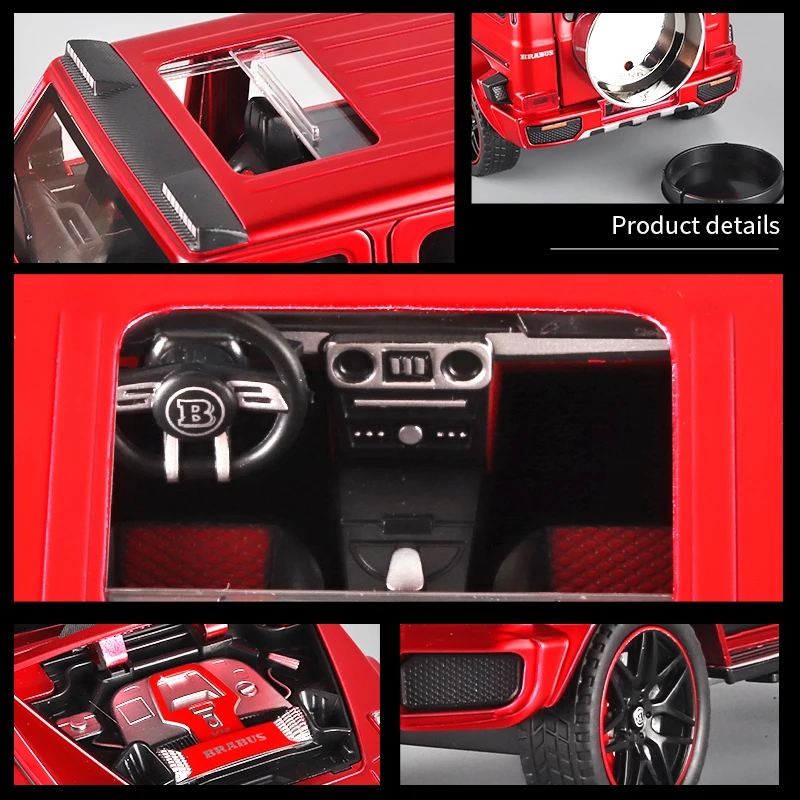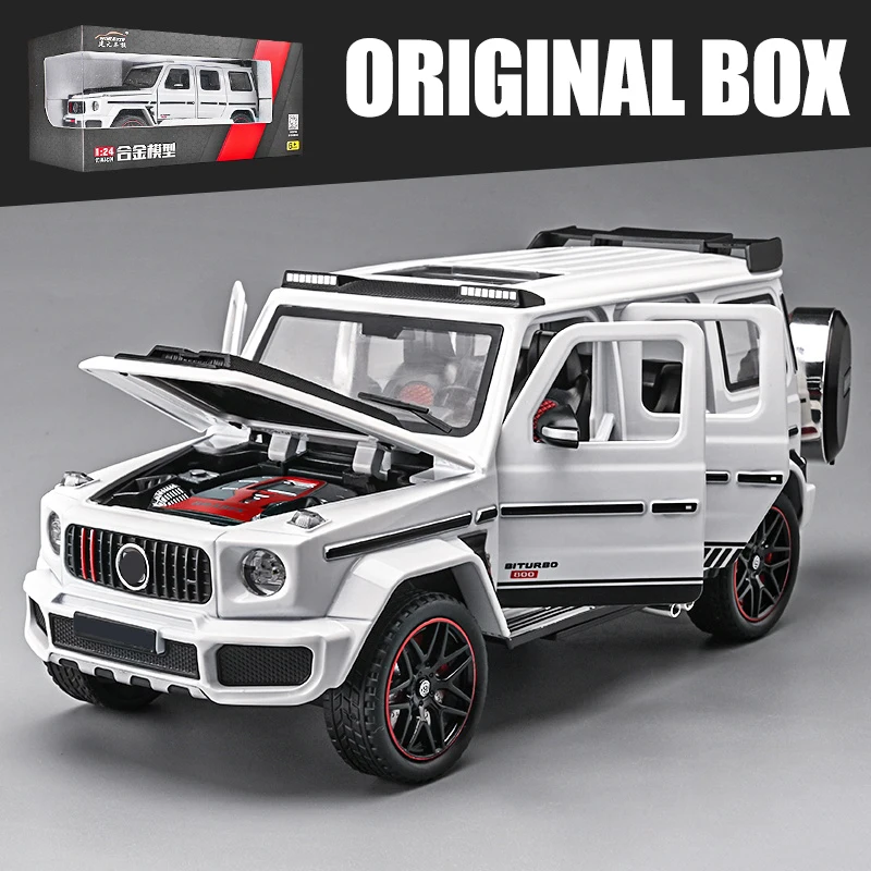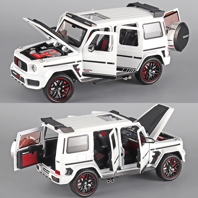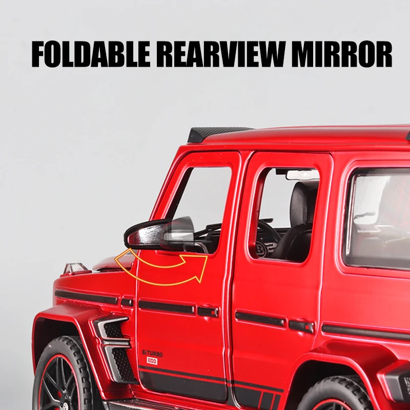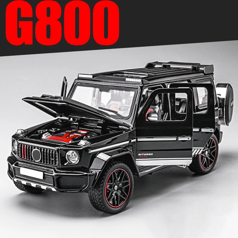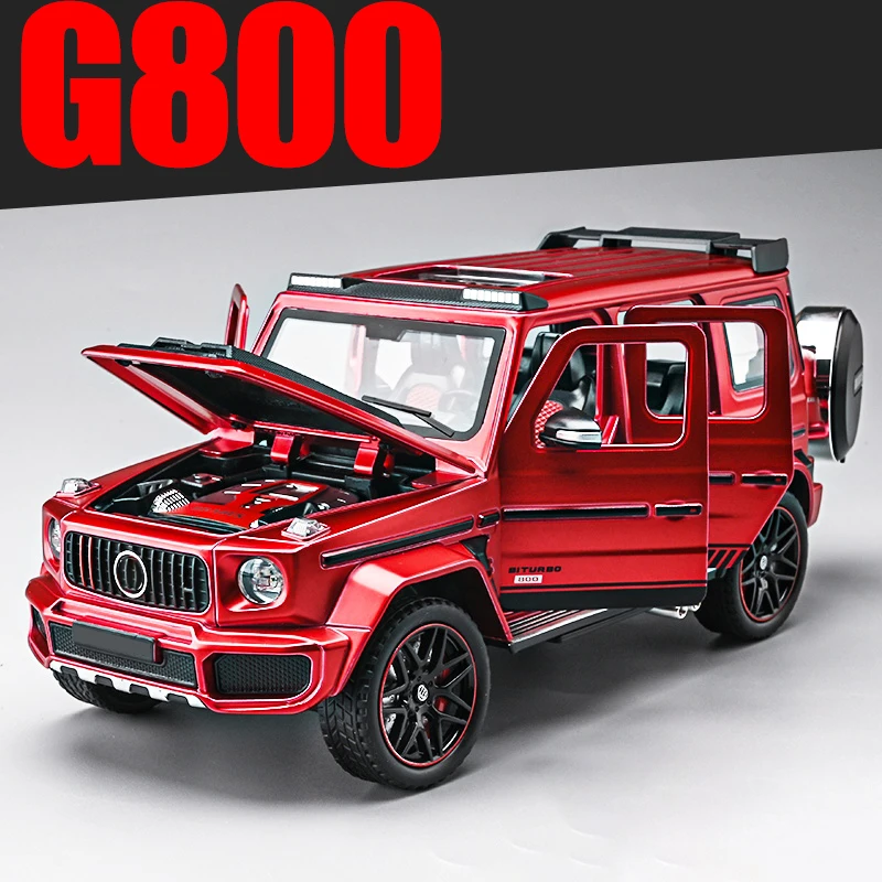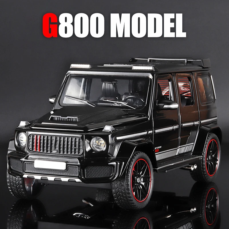 Experience the thrill of owning this stunning 1:24 scale diecast model of the Mercedes Benz G800 SUV, crafted with incredible attention to detail. Featuring a vibrant metallic blue finish, this model boasts a glossy, realistic shine that captures the vehicle’s bold presence. Its sturdy, boxy silhouette is accentuated by sharp lines, black accents on the bumpers, side trims, and wheel arches, complemented by functional roof rails and textured rubber tires with red rim accents. The rear-mounted spare tire, covered with a glossy black case, enhances its rugged, off-road appearance. Built from durable diecast metal with authentic silver exhaust pipes, this model combines realism with style, making it an ideal collectible for enthusiasts and admirers of rugged design.
