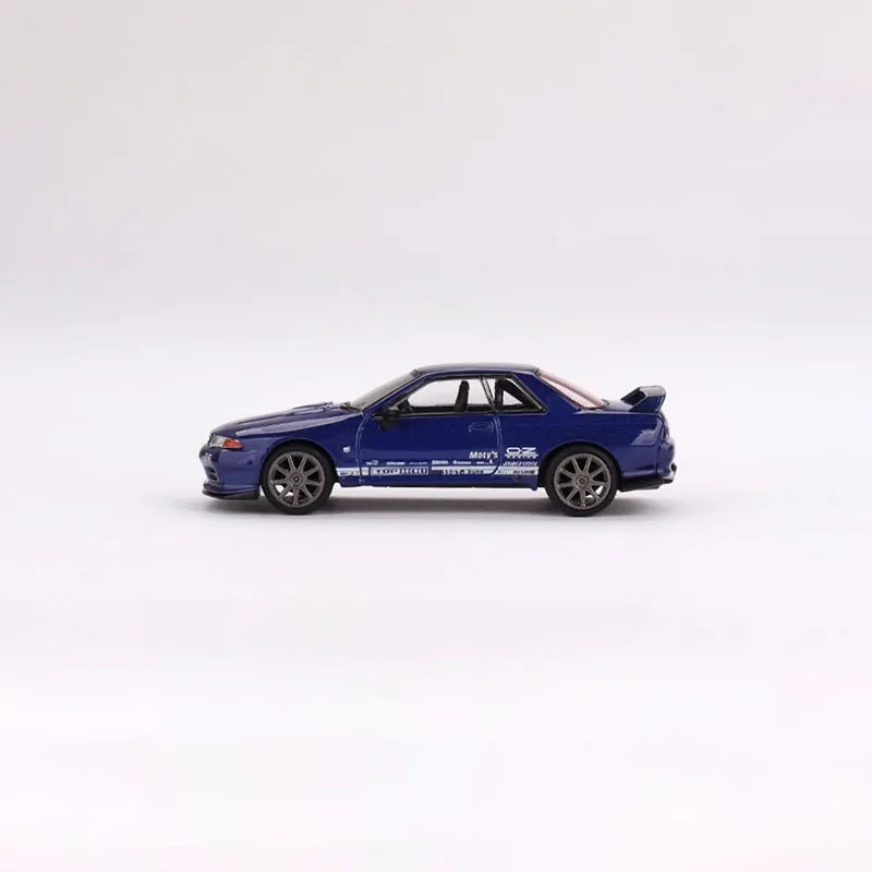 This highly detailed 1:64 scale diecast alloy model of the Nissan Skyline GTR R32 measures approximately 64mm in length, featuring a vibrant blue metallic finish that highlights its aerodynamic design. Crafted for static display and collection, it includes realistic sculpted body panels, detailed front grille and headlights, black rims with intricate rims, racing-inspired decals, and a rear spoiler for an aggressive look. Made from alloy with no electrical components or batteries, it is a fragile, finished collectible intended for adult display. Manual assembly may be required if parts loosen; not suitable for children. Perfect for car enthusiasts and collectors who appreciate precision and craftsmanship.