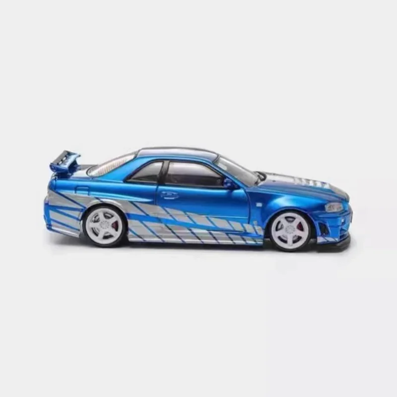 This 1/64 scale diecast alloy model captures the iconic GTR R34 Nismo in a vibrant blue finish, measuring approximately 24mm in length. Designed for collectors and enthusiasts, it features detailed aerodynamic elements, white five-spoke wheels with tread patterns, and clear windows revealing a simplified interior. Crafted from alloy, this finished decorative piece is ideal for display or gifting and is suitable for ages 14 and above. With meticulous attention to detail, it embodies the classic high-performance aesthetic of the GTR R34 Nismo, making it a must-have addition to any serious automotive collection.