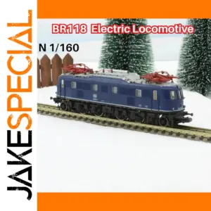 Step into the world of railway passion with this detailed PIKO BR118 model locomotive, crafted at a 1:160 scale for precise display. Its sleek, streamlined design highlights a vibrant blue glossy finish, capturing the modern elegance of this iconic electric locomotive. The rounded front cab features a large, curved windshield complemented by small side windows, providing an authentic and polished look. The roof boasts contrasting silver or gray vents and small components, enhancing realism. Intricate red pantographs sit atop, with multiple arms and connection points, adding striking detail. The sides display tiny, evenly spaced windows, subtle raised panel lines, and vent-like structures, contributing to its highly realistic appearance. This model perfectly blends bold aesthetics with fine craftsmanship, making it a captivating collectible for any enthusiast.