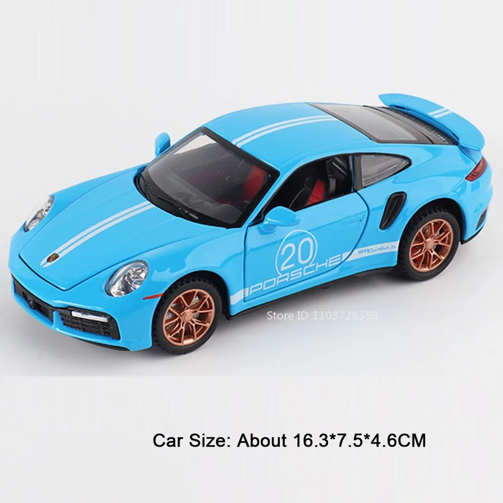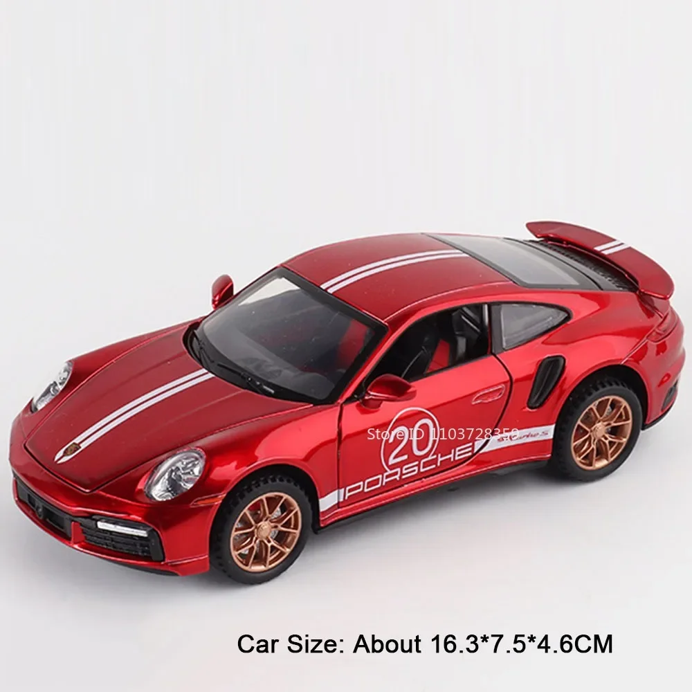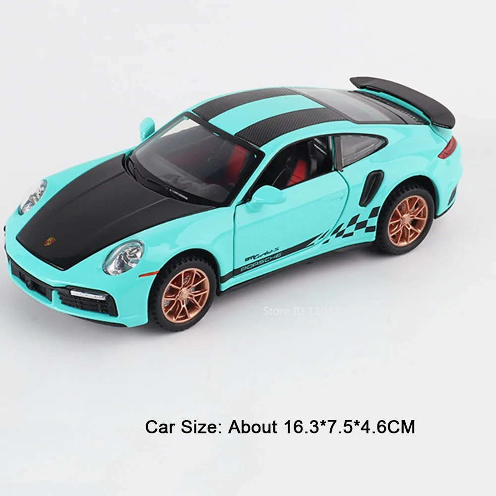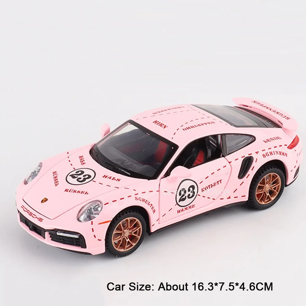This highly detailed 1:32 scale diecast model of the Porsche 911 Turbo S combines exquisite craftsmanship with functional features. Crafted with a metal body, plastic chassis, and rubber tires, it measures approximately 16.3 x 7.5 x 4.6 cm and is available in vibrant colors including white, red, black, blue, and pink. The model boasts realistic openable doors, engine hood, and trunk, along with sound and light effects activated by pressing the front wheels. Its pull-back motor enhances playability, making it a durable and premium collectible for car enthusiasts and experienced collectors. Batteries are included for immediate fun and display.