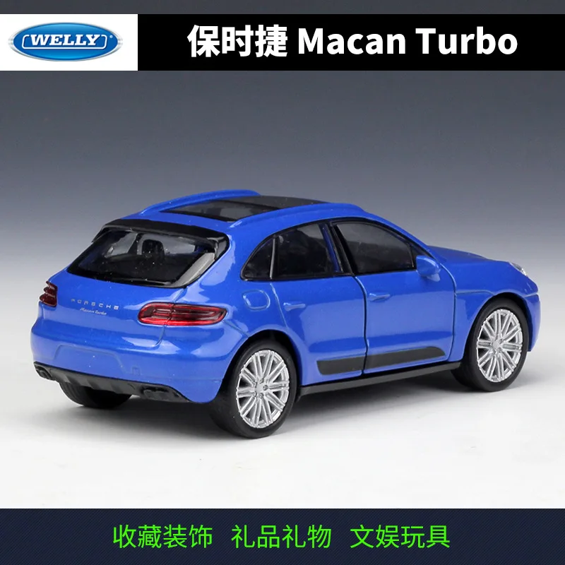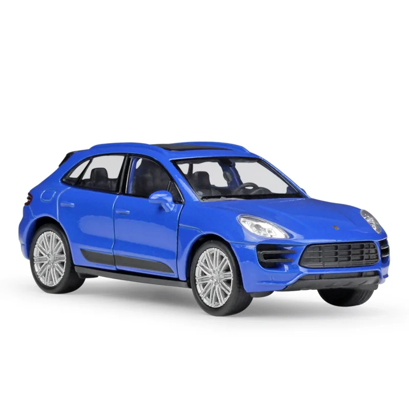 Experience the thrill of Porsche with this detailed 1:36 scale diecast replica of the Macan Turbo, finished in a vibrant metallic blue. Crafted from high-quality metal, this collectible features a sleek aerodynamic design, intricately detailed headlights, grille, and sculpted hood lines that capture the essence of the real vehicle. The black window trim, sculpted side mirrors, and multi-spoke silver alloy wheels with detailed black tires enhance its realistic appearance. With precise panel lines, lens-like taillights, and a subtle rear spoiler, this model offers an authentic and visually striking showcase piece, perfect for adult collectors seeking a sophisticated addition to their collection.