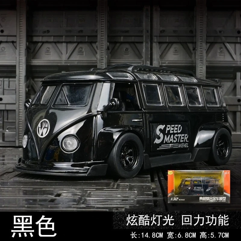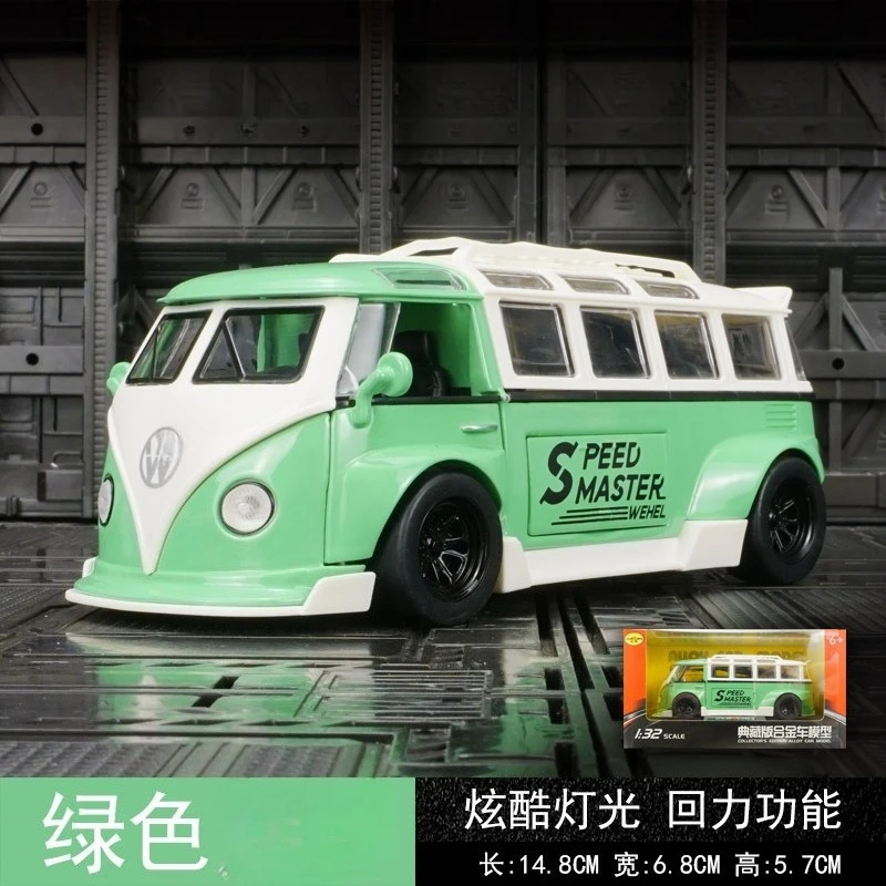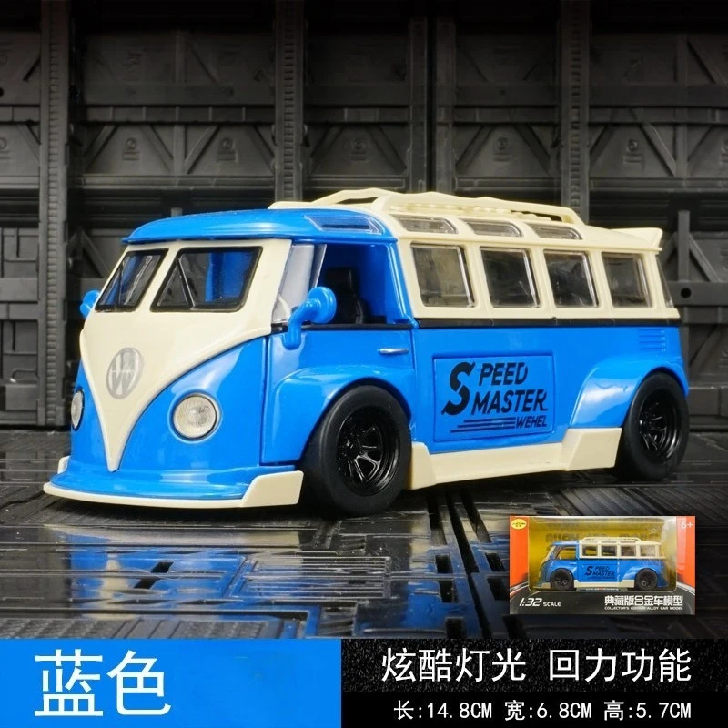 - This model Van is a 1:32 scale diecast alloy replica featuring a nostalgic vintage design attractive for collectors. The vibrant blue finish highlights its bold, lively presence on any display shelf.