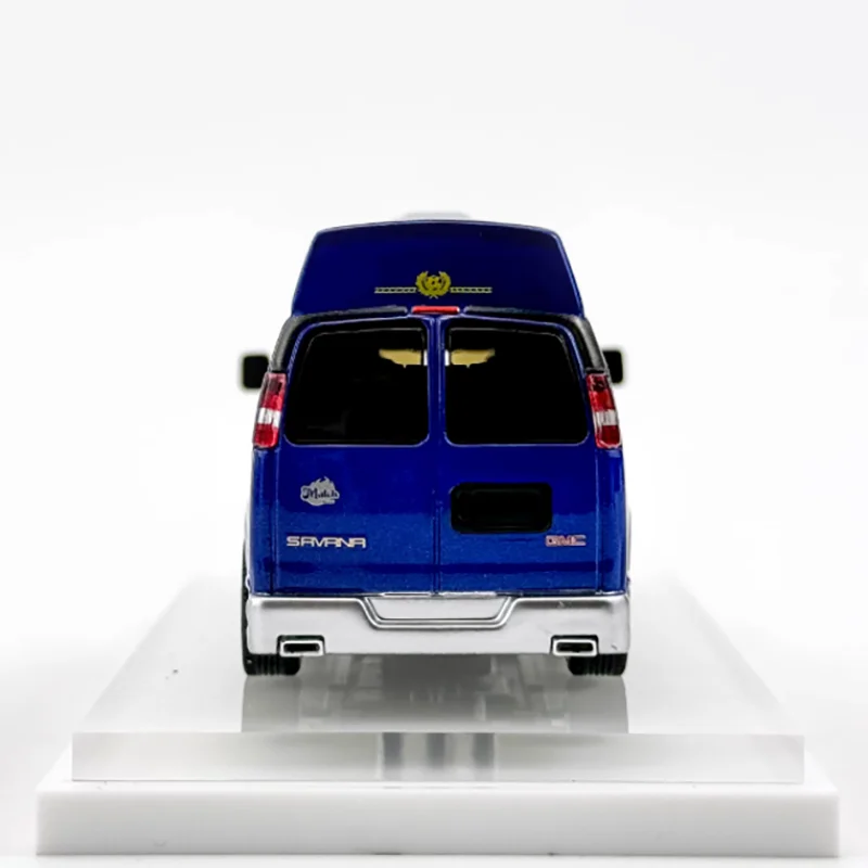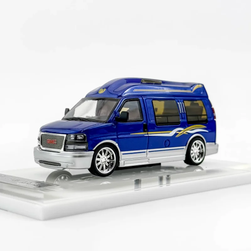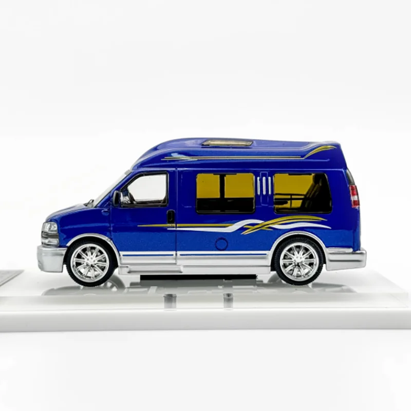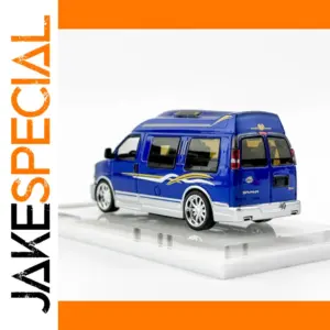 Step into the world of collectible miniatures with this exquisite 1:64 scale diecast SAVANA Business RV by WELLY. Crafted from alloy and plastic, it boasts a striking glossy blue finish accented by sleek white and gold wave-like stripes that add dynamic style. The detailed alloy body is complemented by transparent windows revealing a light-colored interior, emphasizing realism and sophistication. Intricate silver rims on the wheels, clear and red tail lights, and a subtle black roof component showcase impeccable craftsmanship. Designed specifically for adult collectors, this model provides a refined, polished appearance perfect for display. Its durable construction ensures a timeless addition to any collection, combining vibrant aesthetics with precise detailing that captures the essence of a modern RV.