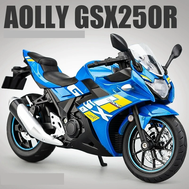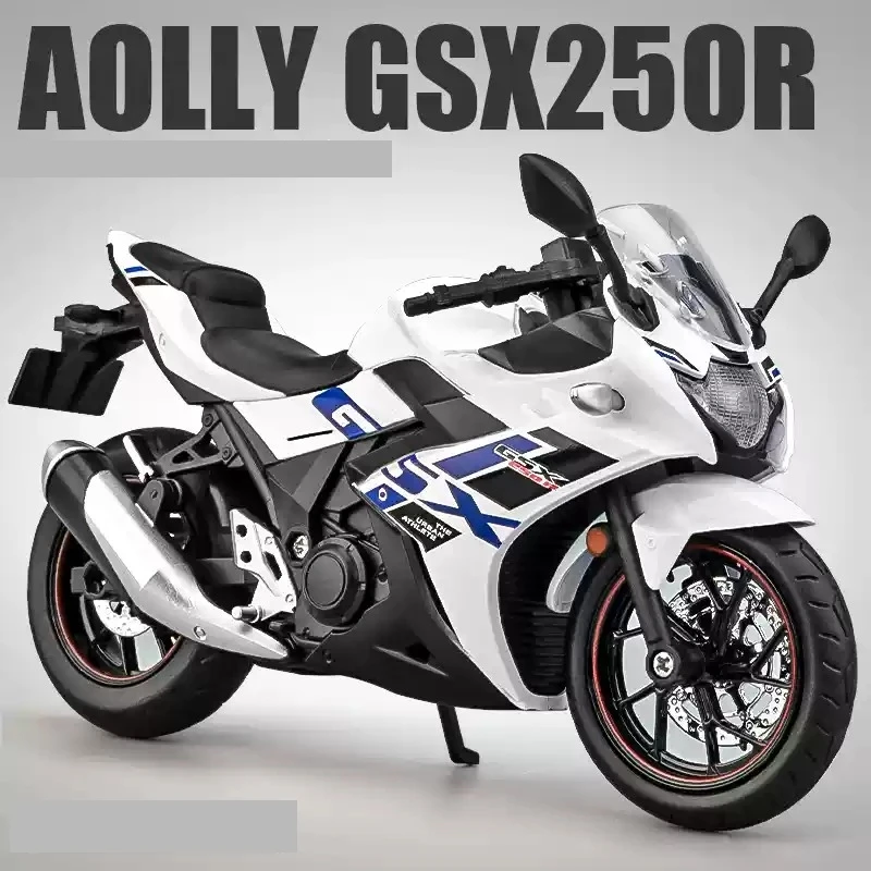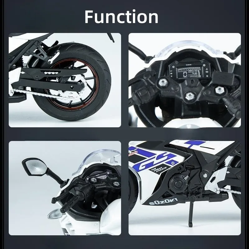 - The model measures precisely for display, with realistic proportions and intricately crafted details capturing the dynamic Suzuki GSX-250R design. Suitable for collectors and riding enthusiasts alike.