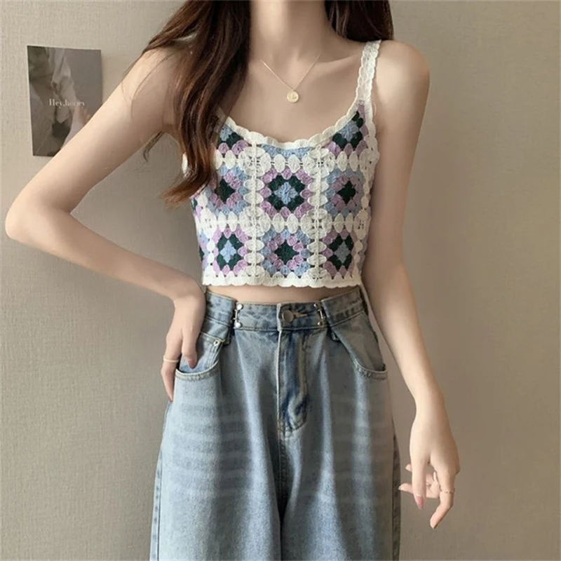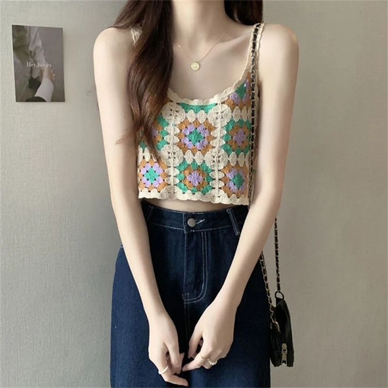 Immerse yourself in the carefree bohemian vibe with this vintage-inspired women’s crop top, crafted from 100% polyester with a lightweight, slightly stretchy knitted fabric. Featuring a square neckline, intricate floral embroidery in vibrant shades of purple, green, yellow, orange, and pink, and geometric patterns with hollow-out decorative accents, this top exudes a lively, summery charm. Its regular length and scalloped edges enhance the feminine silhouette, making it perfect for casual outings and warm weather. Designed for ages 18-24, it is a one-size-fits-all piece in the “as pic” color, ideal for those who appreciate textured, handcrafted details and vintage style in their summer wardrobe.
