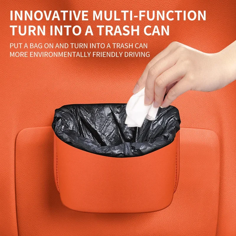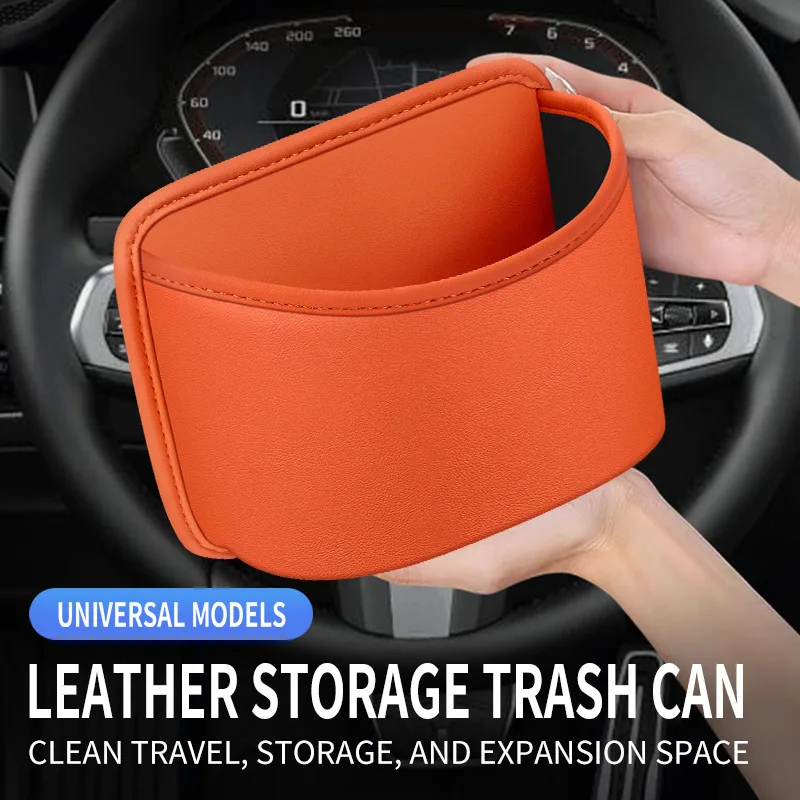 Enhance your car’s interior with this stylish foldable trash can, crafted from environmentally friendly PU leather for a sleek, polished look. Measuring 20.5 cm x 10 cm x 15.5 cm and weighing approximately 200 grams, it features a lightweight, rust-proof, waterproof, and pressure-resistant design with a 1200 ml capacity. Its round shape and available vibrant colors—black, mocha brown, orange, red, and white—blend modern aesthetics with practicality, functioning also as a door organizer. Perfect for all car models, this versatile accessory adds convenience and style to your daily drive, making cleanliness effortless and interior appearance sophisticated.