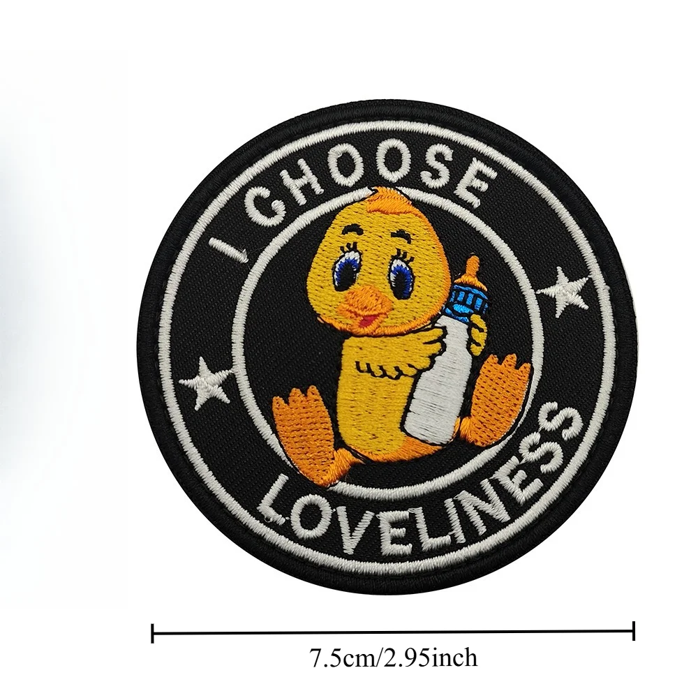 Transform your jackets, backpacks, or hats with this vibrant, whimsical embroidered patch. Designed with detailed, textured stitching, it features three cheerful cartoon characters—a yellow kitten, a white kitten, and a lively chick—each holding cute accessories and embroidered with bright colors like yellow, white, pink, and blue. The black circular background with white border creates a sharp contrast, making the playful designs pop. Perfect for DIY projects, this patch adds a fun, personalized touch to your wardrobe. Crafted from eco-friendly polyester, it offers durability and a soft texture. Thanks to its hook and loop backing, it attaches securely yet remains easy to remove or reposition as your style evolves. Elevate your accessories with a lively, cheerful vibe today.