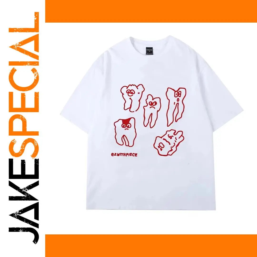 Experience daily comfort and playful style with this casual white T-shirt made from 100% breathable cotton. Its relaxed, regular length cut and slight stretch elasticity ensure a perfect fit for all-day wear. The standout feature is the vibrant cluster of five cartoon emoticons outlined in lively red, each with exaggerated facial expressions—smiling, neutral, silly, or surprised—creating an engaging, humorous vibe. Beneath this lively design, the bold “EZWTHPIECE” text adds a spirited touch. Suitable for all seasons, this T-shirt is perfect for expressing your youthful personality while staying comfortable. It pairs easily with jeans or shorts, making it a versatile addition to your wardrobe for casual outings or social gatherings, instantly adding fun and color to your everyday look.