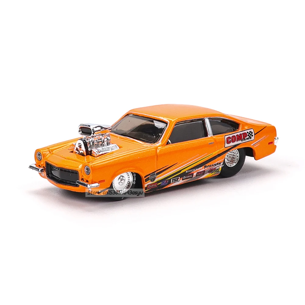 - Features a 1971 Chevrolet Vega with aerodynamic shape, sloped roofline, sophisticated decals, and precise front grille and headlight details, emphasizing classic style and design accuracy.