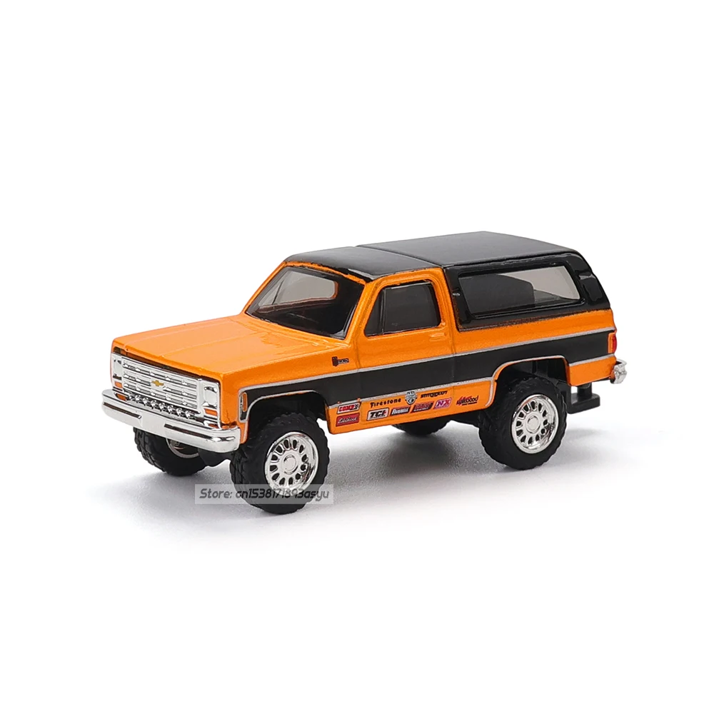- Includes a vibrant orange Chevrolet K5 Blazer with rugged design, black accents, detailed grille, headlights, and realistic decals for vintage appeal and authenticity.