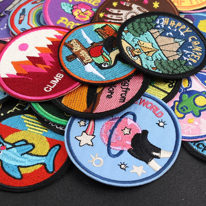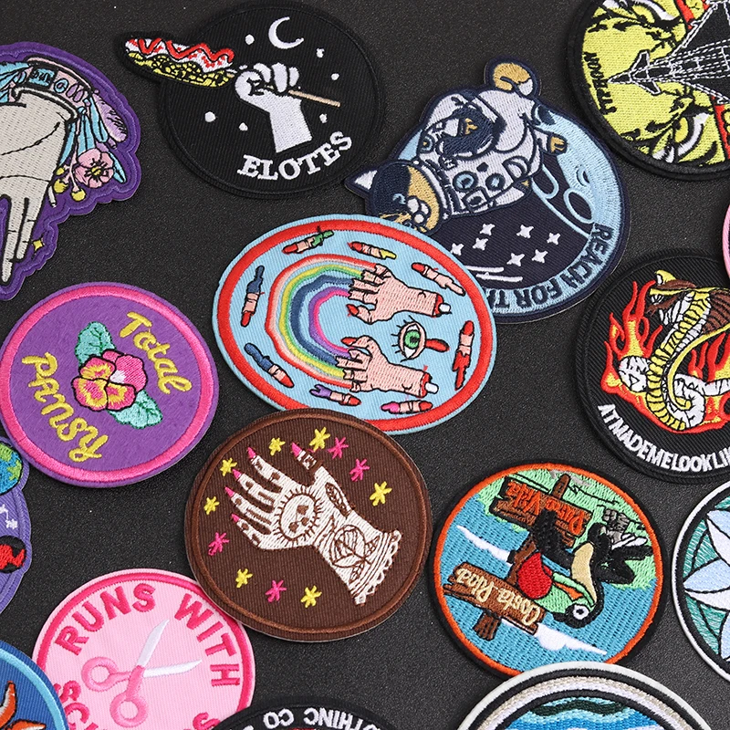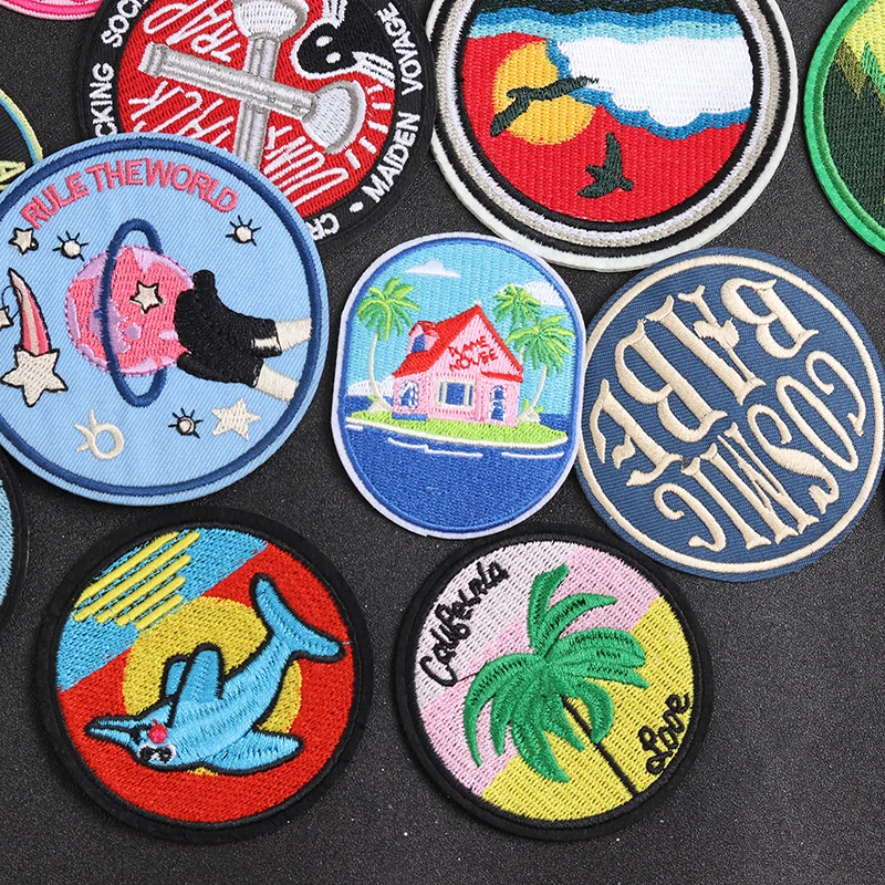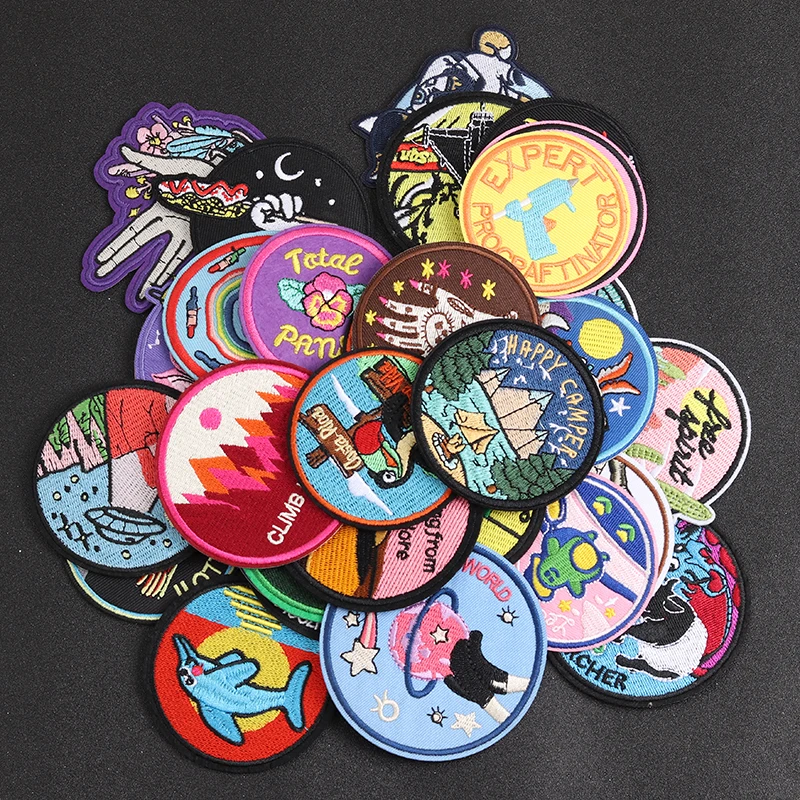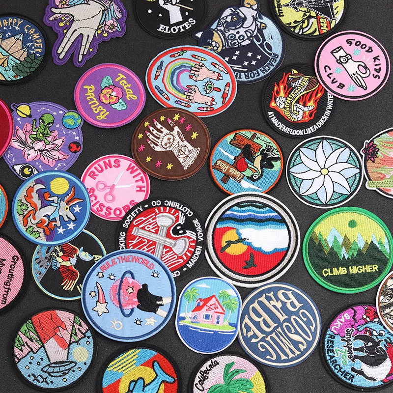 These circular embroidery patches are crafted from durable non-woven fabric, offering a playful and adventurous touch to your clothing and accessories. Featuring vibrant designs available in multiple colors, such as blue, green, pink, and yellow, each patch showcases unique themes ranging from whimsical graphics to natural scenes. With intricate 3D stitching details and eco-friendly construction, these handmade patches provide an artistic flair. These iron-on patches can be easily applied to various items like t-shirts, tops, pants, coats, bags, and even curtains, allowing you to express your personality creatively and effortlessly.