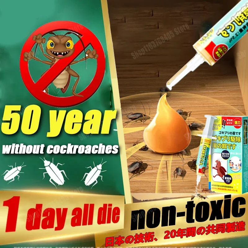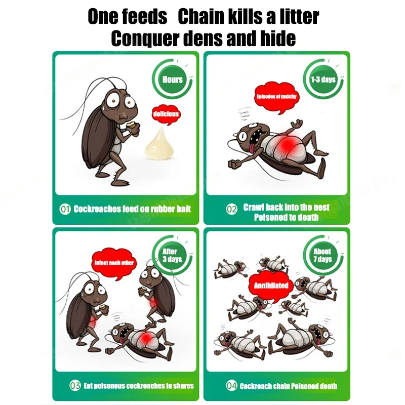 This cockroach gel bait offers an effective, non-toxic solution for home and kitchen pest control, available in convenient pack sizes of 1, 2, 3, 5, and 10 pieces. Designed without high-concern chemicals, it ensures safety while providing reliable elimination of cockroaches. The vibrant packaging features lively colors—yellow, red, blue, and turquoise—with playful illustrations, including a cartoon cockroach and visual cues of active bait stations. Easy to use with a transparent applicator tube, the gel appeals to consumers seeking a safe, effective, and affordable pest control method. Perfect for those looking for quality assurance and stable delivery with discounts on larger sets.
