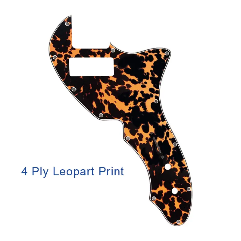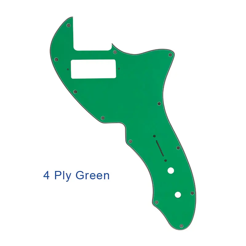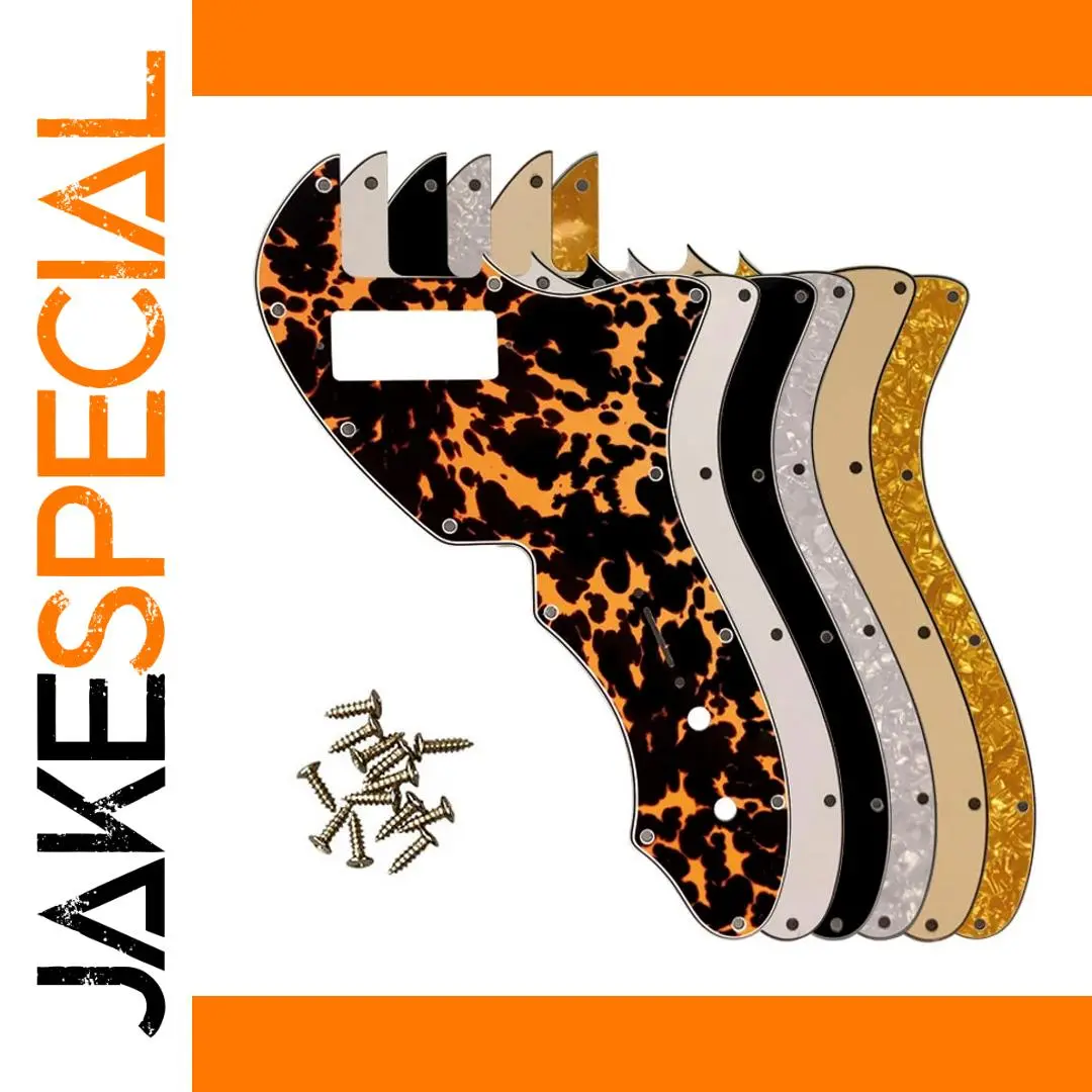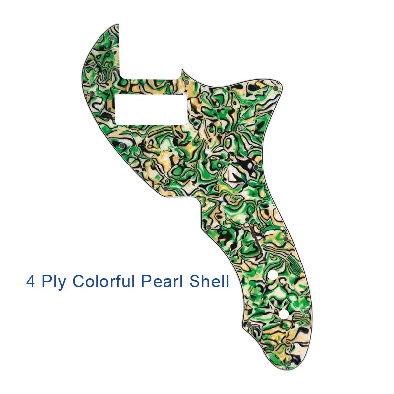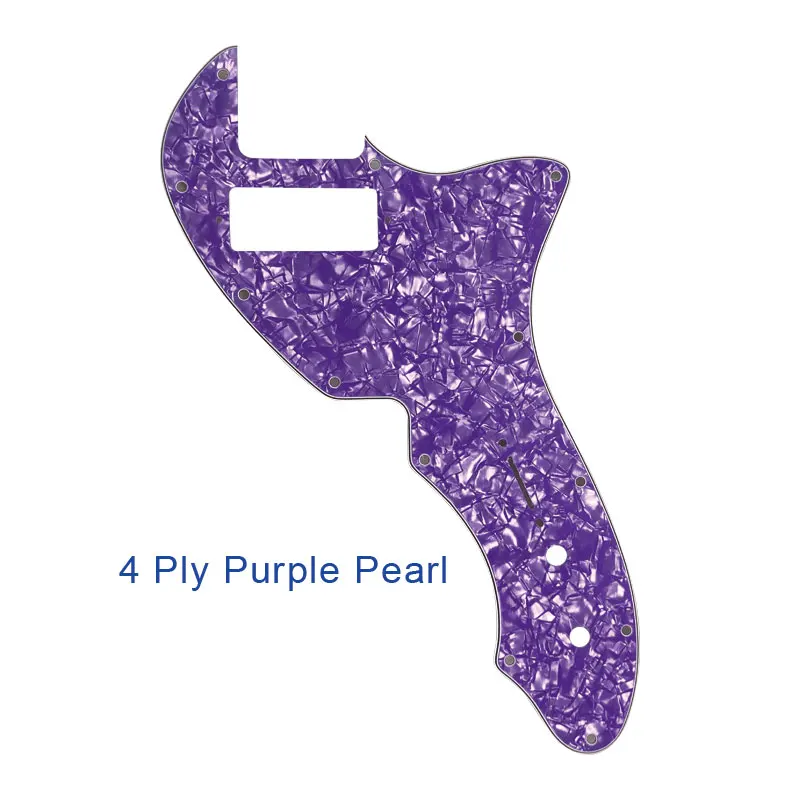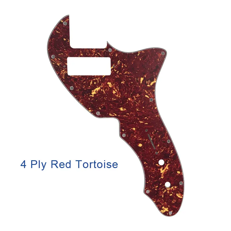 Enhance your mini Tele 69 Thinline guitar with this high-quality, durable pickguard available in a variety of vibrant colors and patterns, including tortoise shell, pearl, and translucent finishes. Crafted from 3-ply or 4-ply PVC plastic with composite materials, it offers excellent anti-scratch protection and features a real aluminum foil shield for effective noise elimination. With precise dimensions compatible with standard mini Tele 69 Thinline models, this pickguard includes one piece weighing approximately 200 grams and 12 silver mounting screws for easy installation. The glossy surface, smooth edges, and protective film ensure a polished, professional look while providing lasting protection for your instrument.