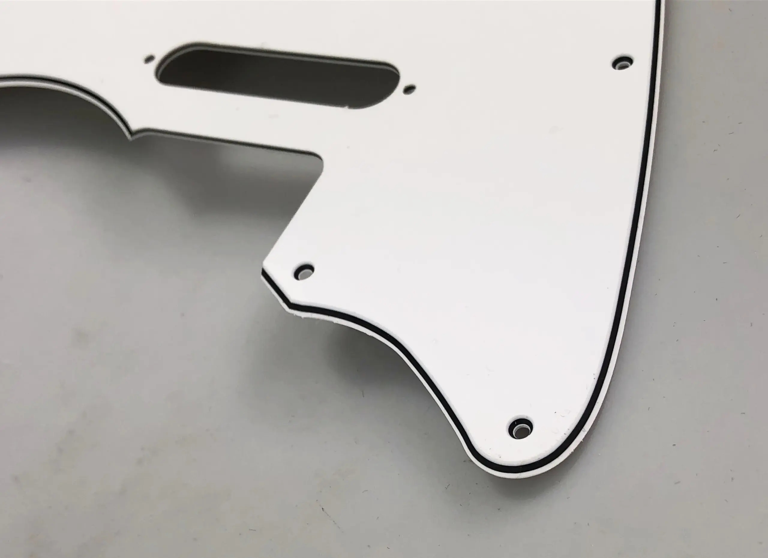 Imagine enhancing your USA Telemaster guitar with a striking new look that reflects your style. This custom pickguard, designed for most USA Telemaster models, offers a perfect blend of protection and aesthetic appeal. Crafted from durable PVC and composite materials, it features a resilient 4-ply construction (with a 3-ply option available). The pickguard’s vibrant colors, like sleek black, refreshing mint, or classic white, are complemented by a glossy or textured finish, ensuring your guitar remains stylish and protected against scratches. Each piece comes with a protective film on top, making installation seamless. When you choose this pickguard, you're investing in a high-quality, visually captivating upgrade that will inspire your musical creativity.