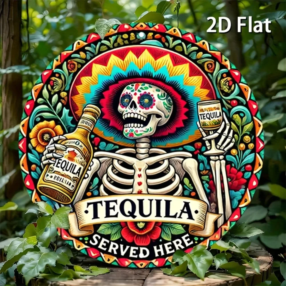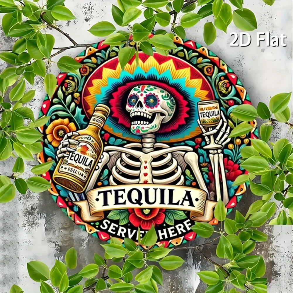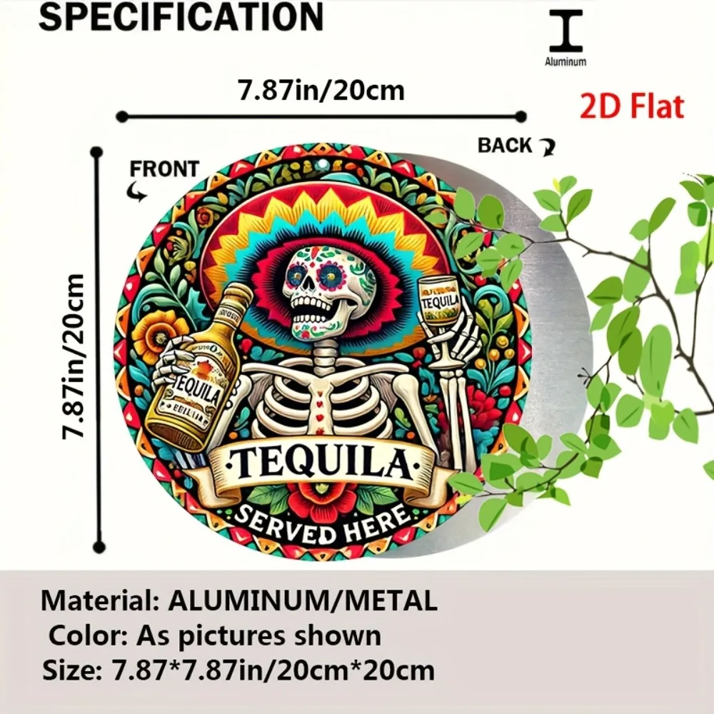 Bring vibrant, festive spirit to your space with this 20 cm (8-inch) round aluminum wall sign featuring a colorful Día de los Muertos-inspired skeleton design. Crafted from durable, weather-resistant aluminum, it boasts a glossy finish that enhances its vivid hues of bright floral and geometric patterns, a cheerful skeleton with a wide grin, and an ornate multicolored sombrero. Suitable for indoor or outdoor display, it includes predrilled holes for easy mounting, making it perfect for home, bar, garage, or cafe decor. Lightweight, easy to handle, and simple to clean with a soft, dry cloth, this eye-catching piece adds lively character to any setting.