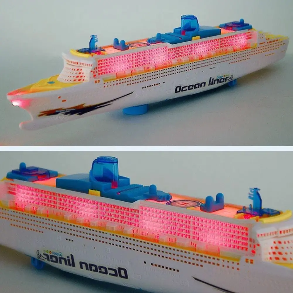 Imagine adding a splash of excitement and color to your collection with this stunning electric toy ship. Designed to resemble a modern ocean liner, it features an eye-catching array of bright, multicolored LED lights that shimmer along its sleek, multi-level superstructure, creating a captivating rainbow glow in low-light environments. The ship’s rounded bow and detailed deck, with tiny cabins and observation areas, evoke realism and adventure. Equipped with sound effects like engine whistling and an automatic steering system that changes direction upon collision, it provides interactive fun. Perfect for enthusiasts who love vibrant, dynamic display pieces, this compact yet impressive model brings the magic of the sea into your space with lively motion and colorful illumination.