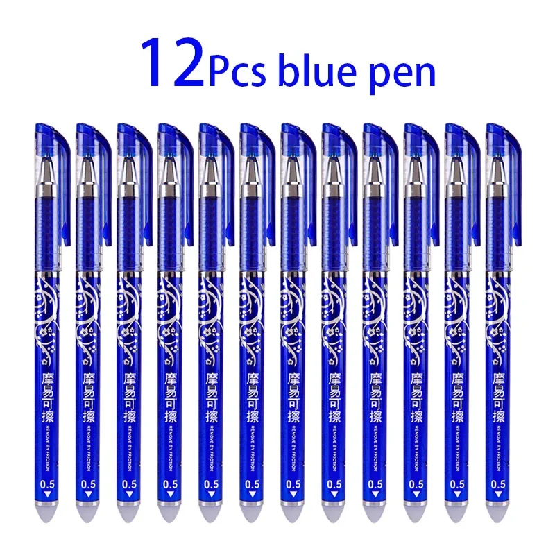 The Vibrant Erasable Gel Pen Set features 0.5 mm fine points for precise writing, available in vibrant blue and black ink options. Each pen boasts a lightweight plastic construction with charming blue barrels adorned with whimsical white floral patterns, enhancing its aesthetic appeal. Clear caps provide convenient portability while keeping the gel ink fresh, making them perfect for everyday use. This set includes various options: 12 black pens, 12 blue pens, 10 black pens, 10 blue pens, 8 black pens, and 8 blue pens. Enjoy effortless corrections with the erasable gel ink that ensures your notes always look their best.